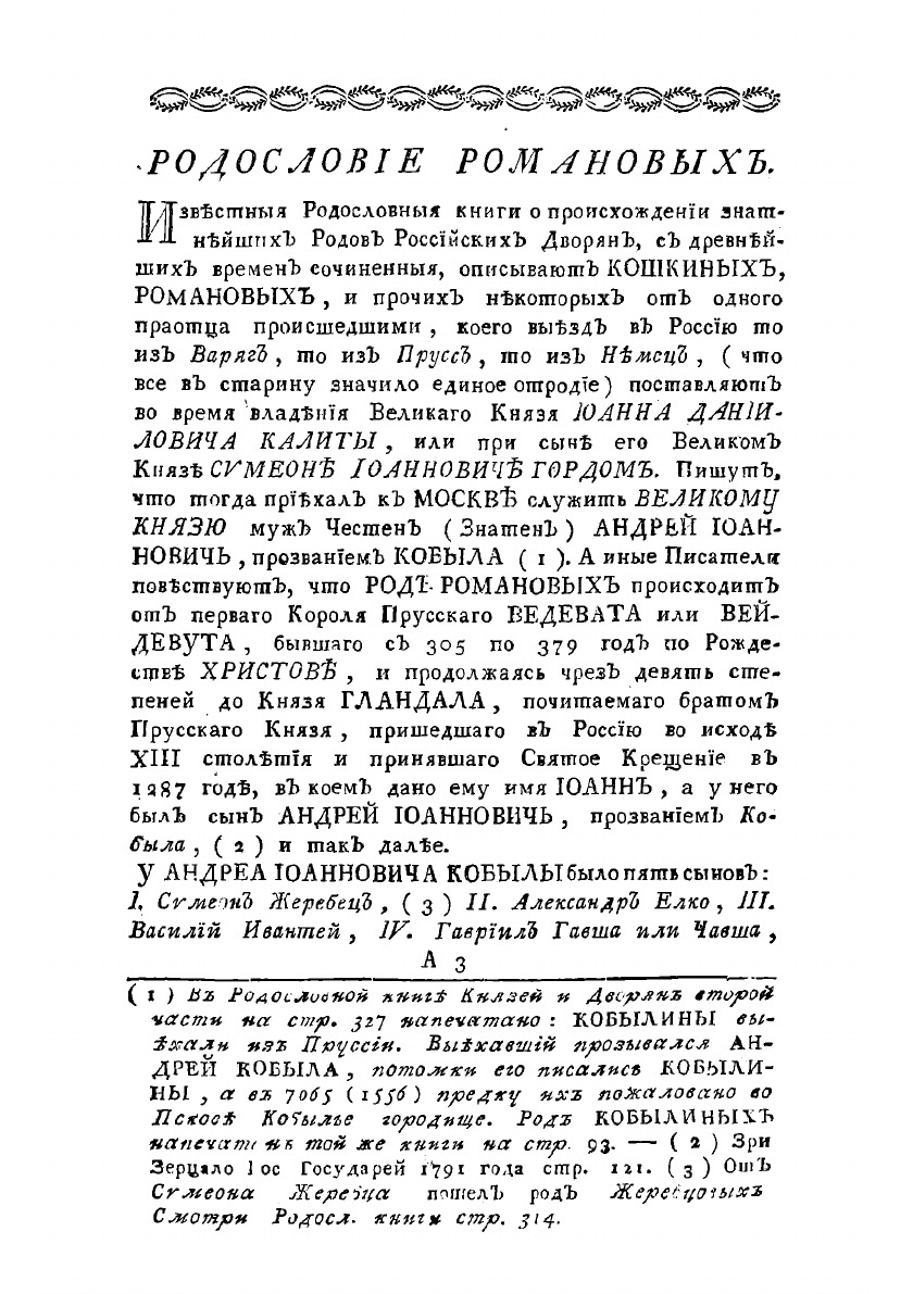 Краткое описание о произшествии знаменитаго рода Юрьевых-Романовых, и жизни великаго государя святейшаго Филарета Никитича, патриарха Московскаго и всея России. Выписал из церковных и разных исторических печатных книг седьмидесятилетний старец Ювеналий, из фамилий Воейковых, в летоот Сотворения мира 7306, от Рождества же по плоти Бога Слова 1798.