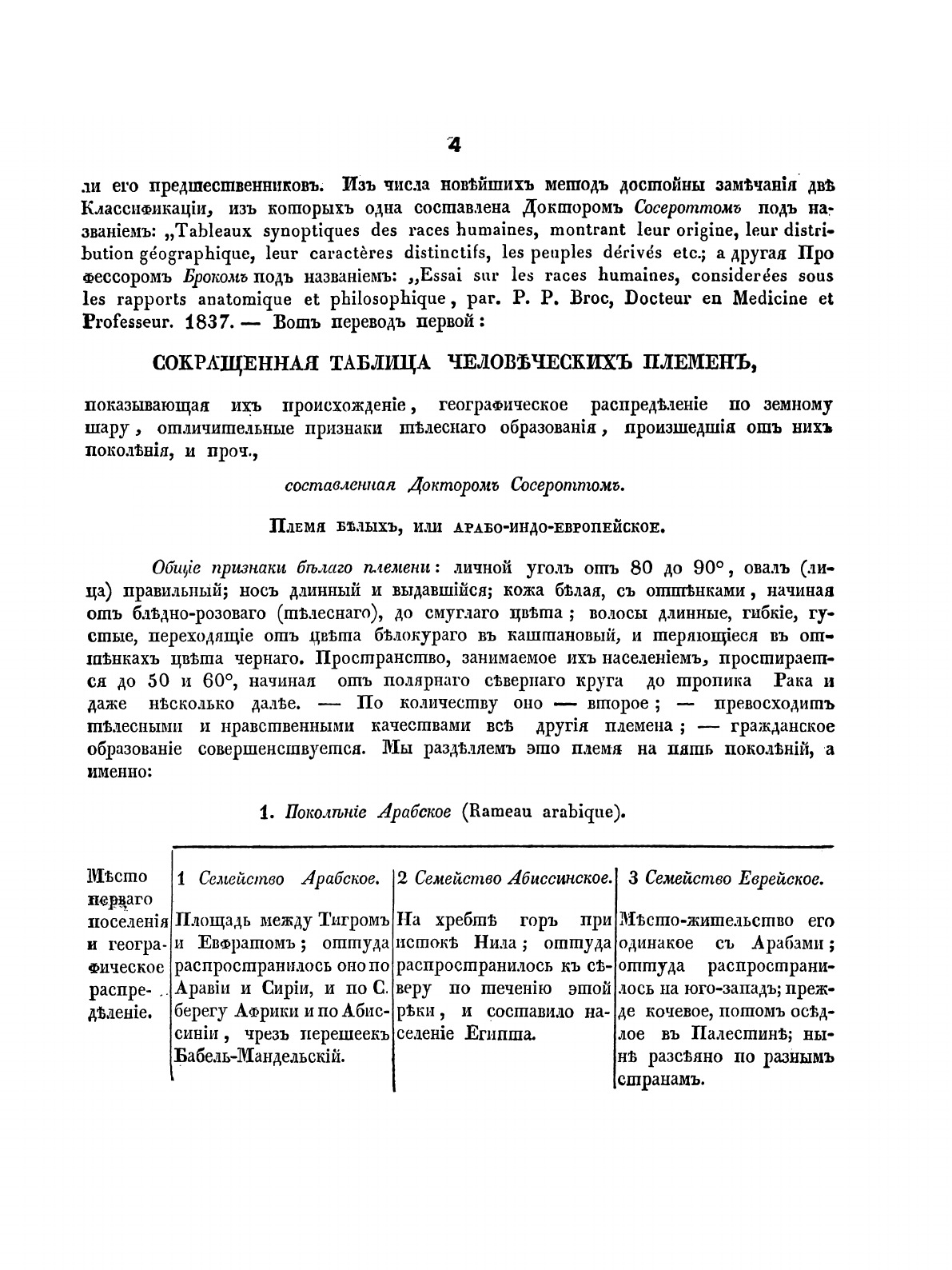 Краткое руководство к познанию племен человеческого рода, с присовокуплением главных признаков, отличающих его от других животных. Составленное из сочинений, об этом предмете, Доктора Сосеротта и профессора Брока.