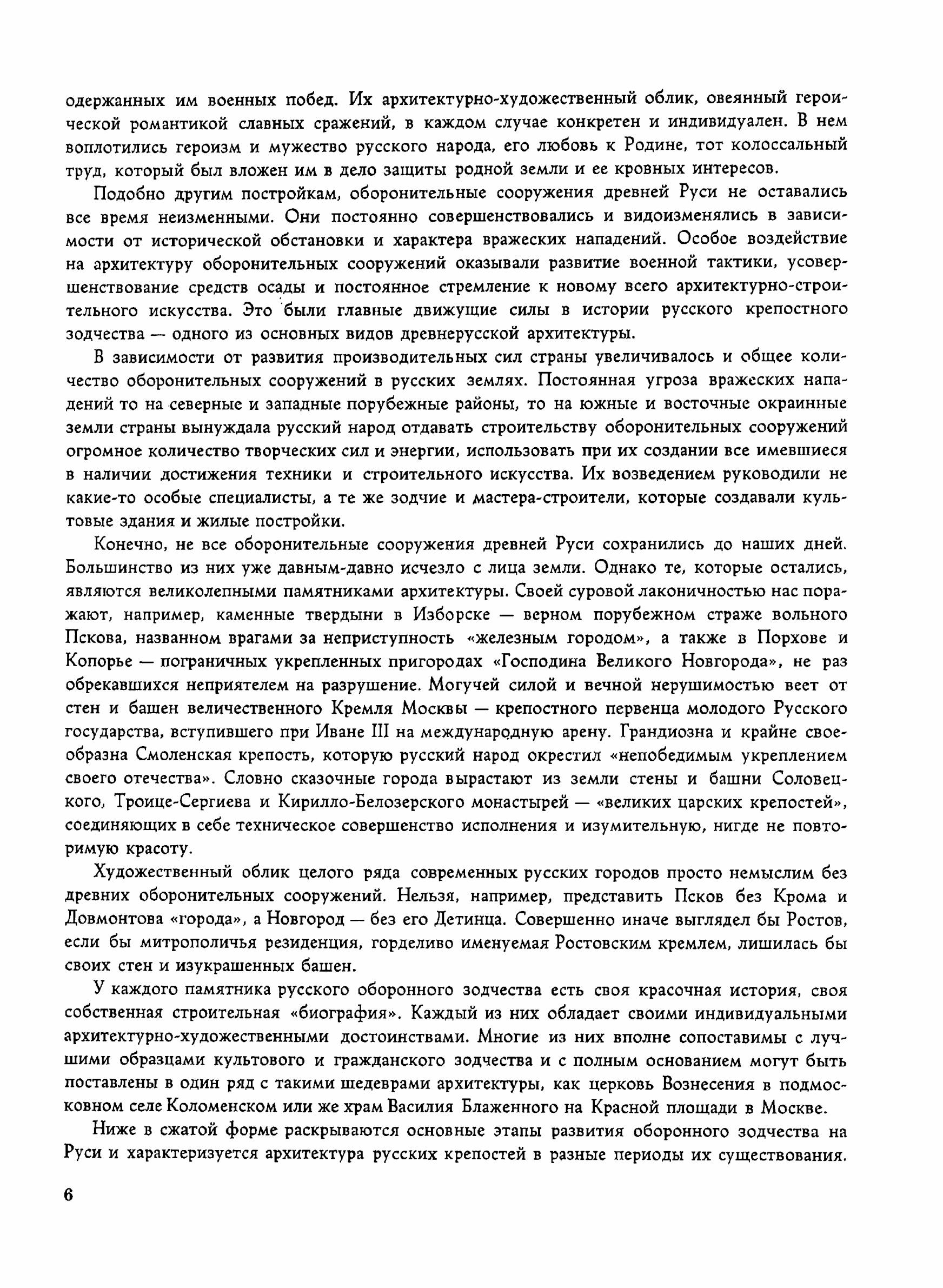 Уделять внимание делу обороны страны и вести широкое строительство оборонительных сооружений русскому народу приходилось на протяжении многих столетий. В исторической жизни древней Руси такие сооружения играли огромную роль. Их могучие стены и грандиозные башни так же выразительны, как и другие произведения архитектуры.