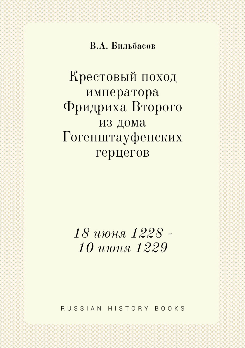 Печатная книга «Крестовый поход императора Фридриха Второго из дома Гогенштауфенских герцегов, 18 июня 1228 - 10 июня 1229» в мягкой обложке, язык - русский. В книге 237 страниц, она напечатана на белой офсетной бумаге плотностью 80 г/м². Формат издания — 148x210 мм. Все книги аккуратно упаковываем в прочный трёхслойный непрозрачный картонный конверт.
