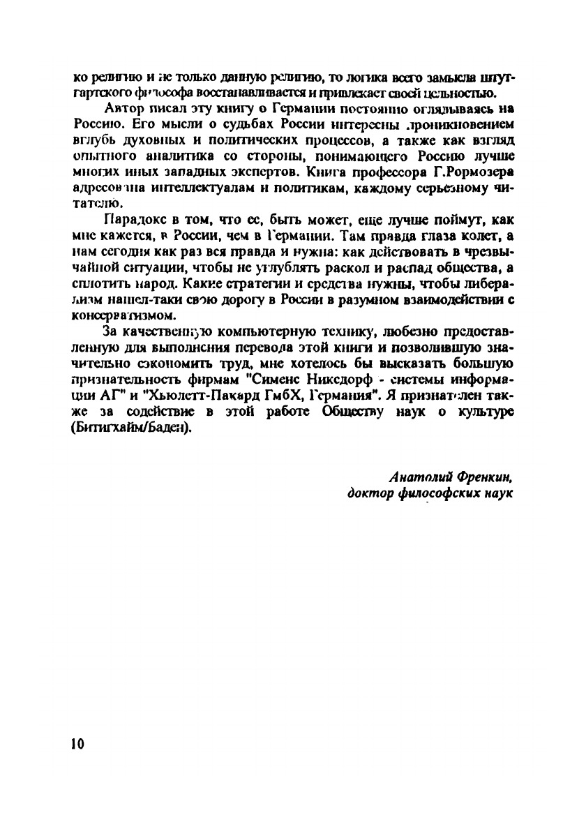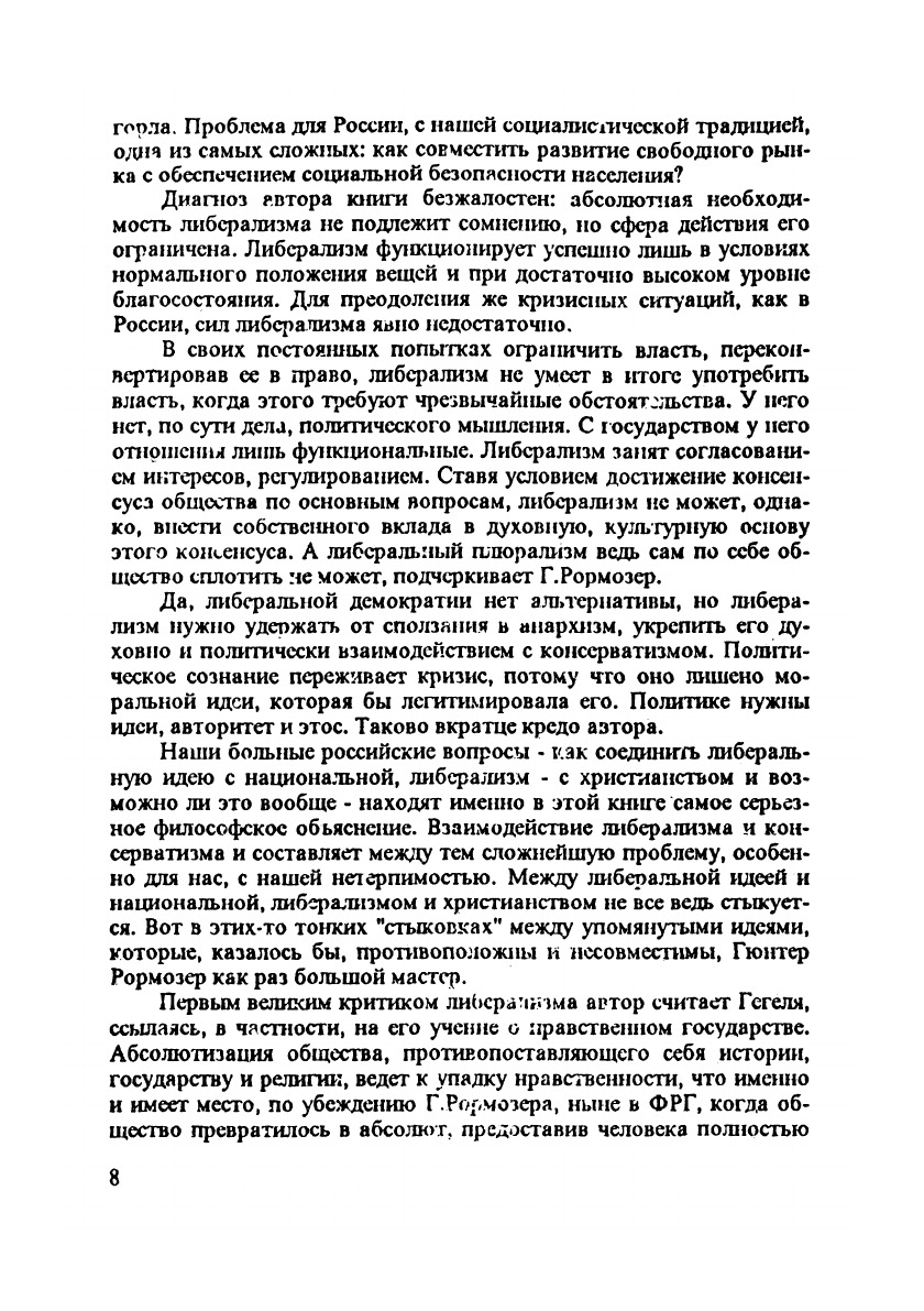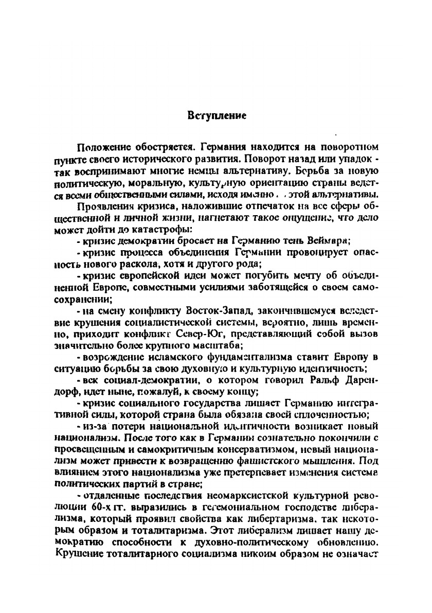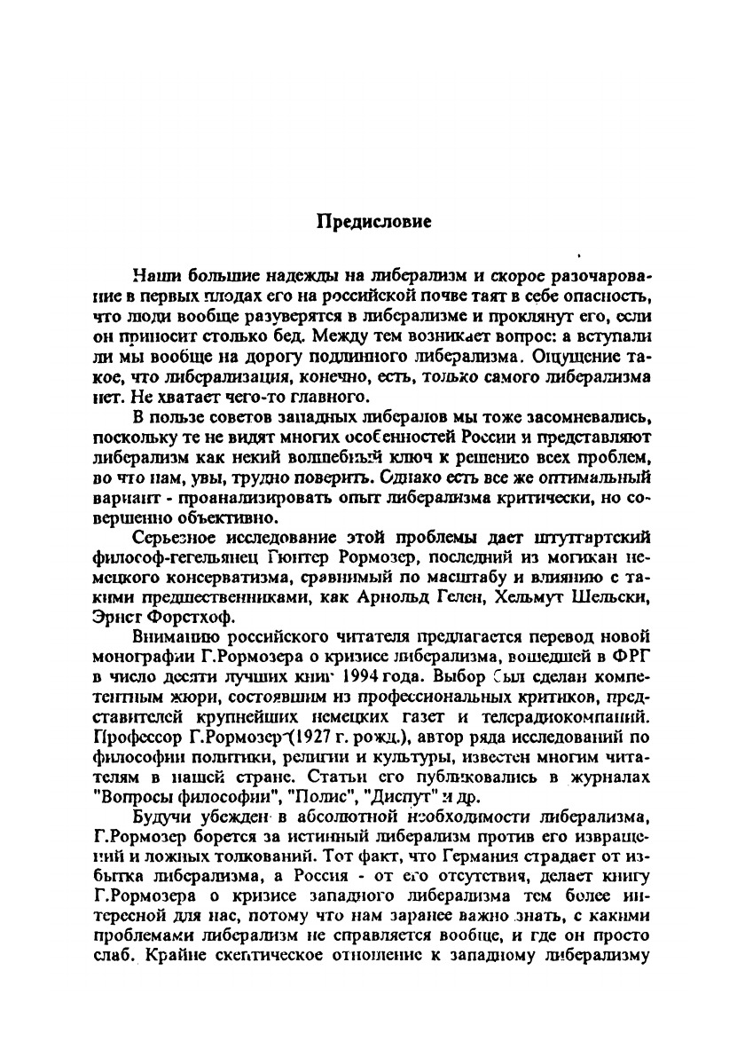 Перевод книги, вышедшей только что в ФРГ и имеющей большой резонанс. Автор – видный представитель консервативной политической философии, профессор университета Хоэнхейм в Штутгарте, – предупреждает об опасности одностороннего либерализма, который притязает на самостоятельное, который притязает на самостоятельное решение всех проблем и заводит общества в тупик. Выход из кризиса либерализма автор видит в возрождении классического либерализма и в непременности взаимодействия его с новым, демократическим консерватизмом.