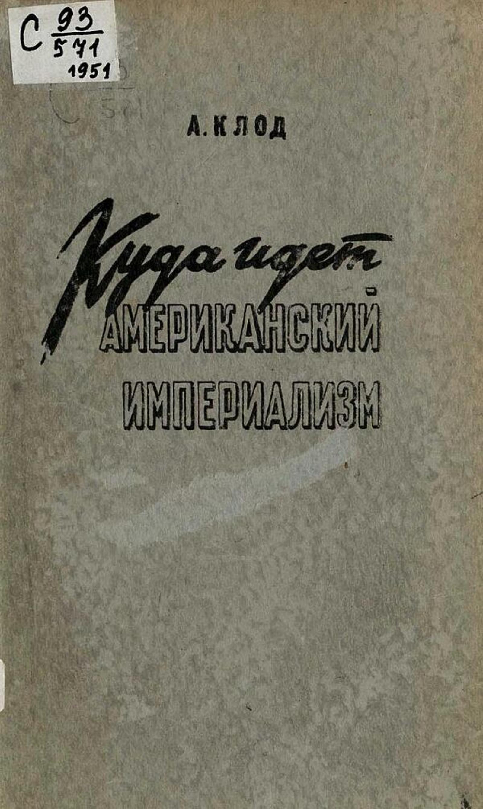 Клод, Анри. Куда идет американский империализм : пер. с франц. / предисл. В. А. Чепракова. — Москва : Изд-во иностр. лит., 1951. — 308 с.; 21 см.