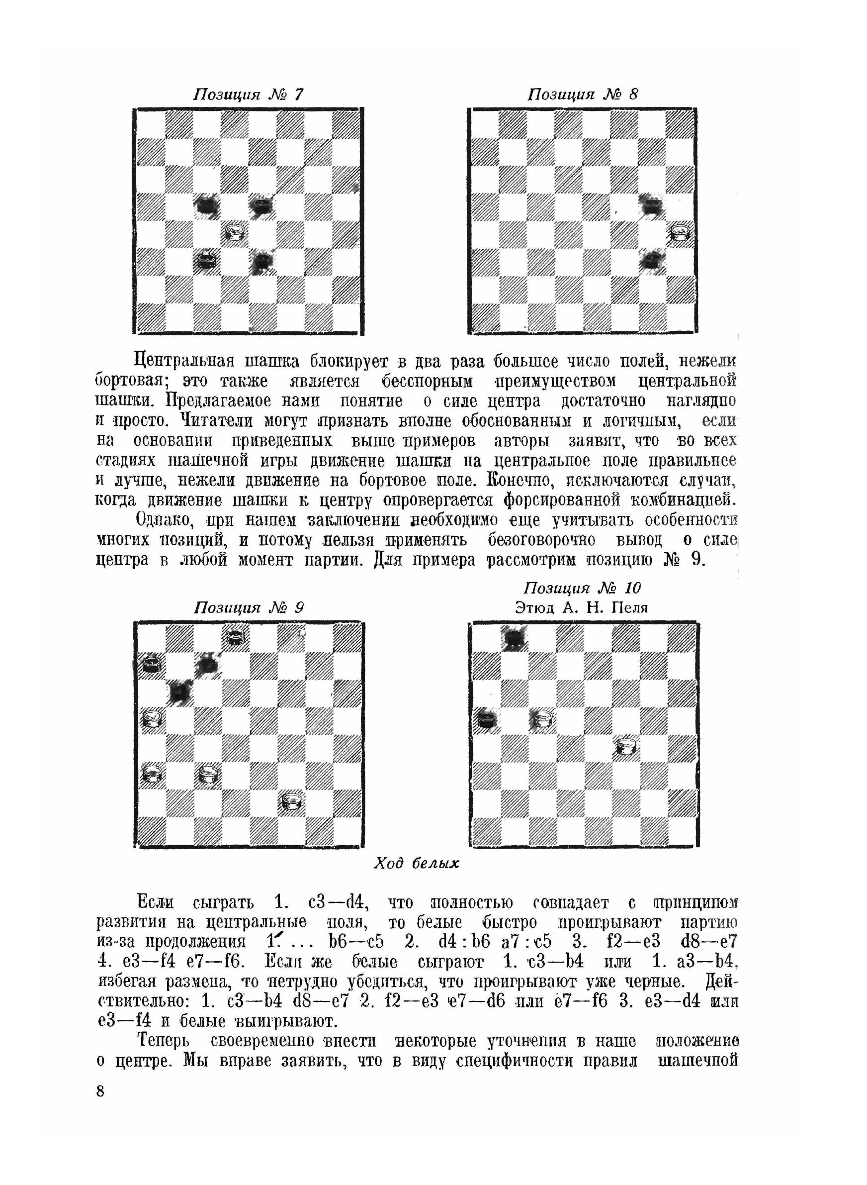 Одна из первых монументальных книг по теории дебютов в русские шашки. Авторами впервые сделана попытка обобщить накопленные знания и дать строгое определение понятиям, применяемым в шашках (например, "дебют", "атака", "центр" и др.), а также закрепить названия дебютов. Кроме этого даны некоторые рекомендации по развитию игры. В книге приведена теория по примерно 20 дебютам в русских шашках.