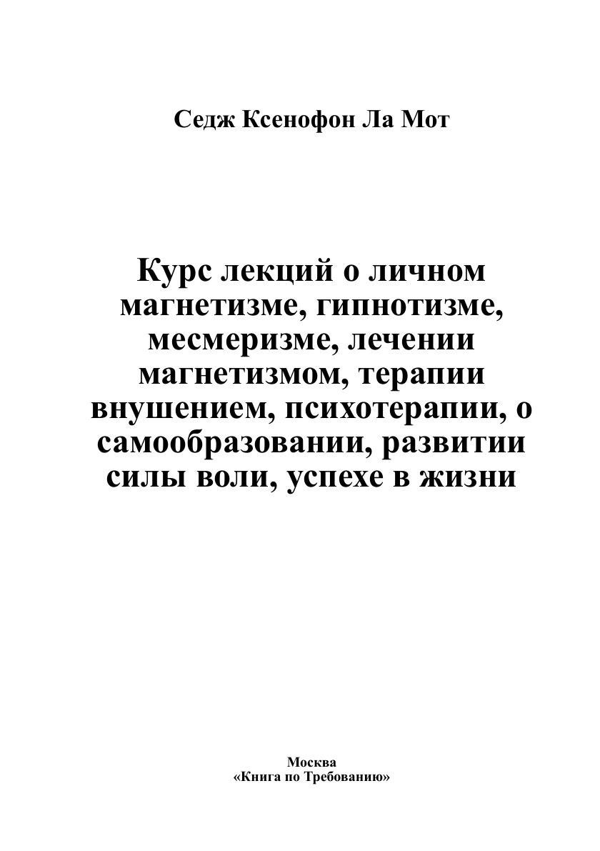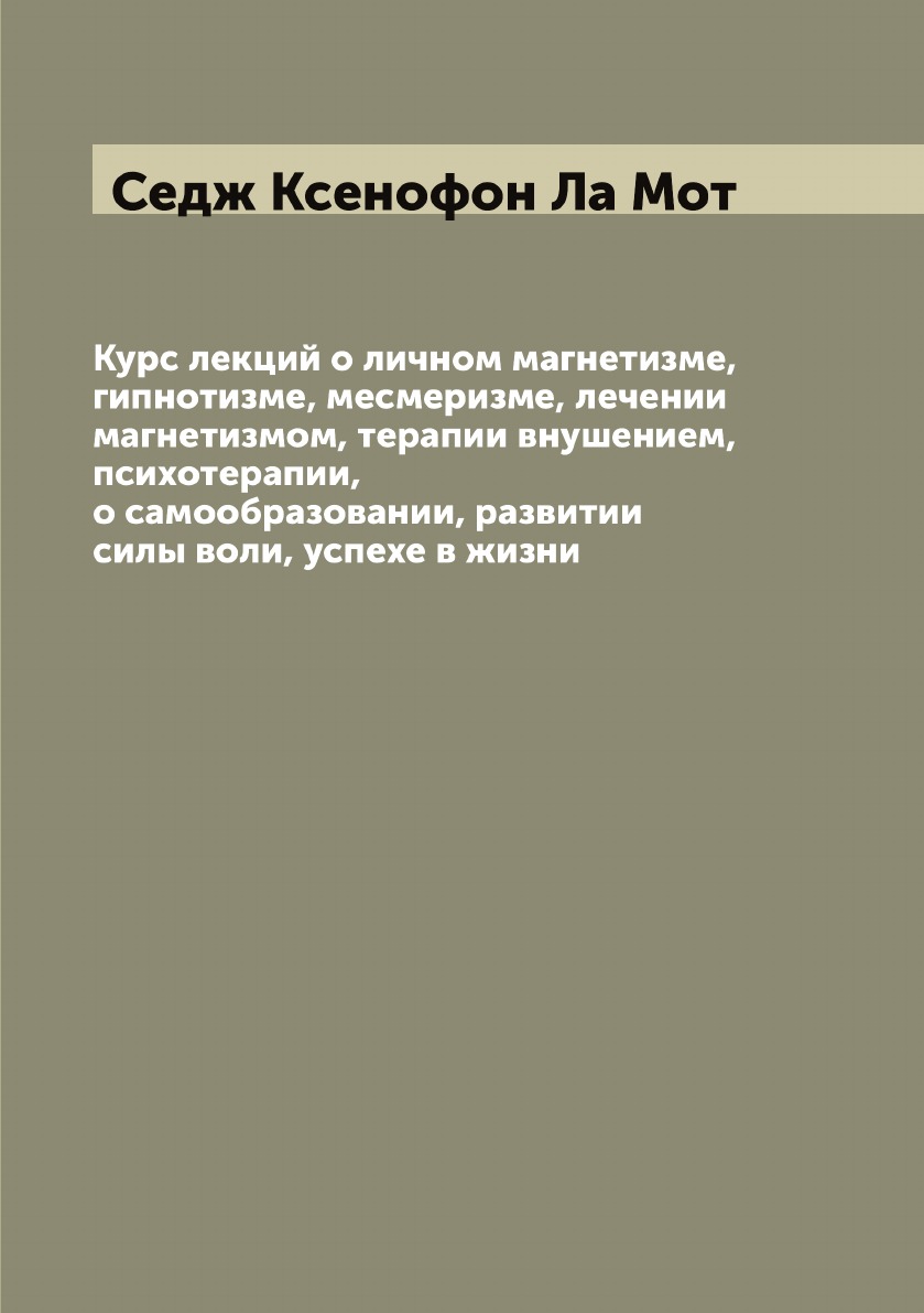 Печатная книга «Курс лекций о личном магнетизме, гипнотизме, месмеризме, лечении магнетизмом, терапии внушением, психотерапии, о самообразовании, развитии силы воли, успехе в жизни» в мягкой обложке, язык - русский. В книге 87 страниц, она напечатана на белой офсетной бумаге плотностью 80 г/м². Формат издания — 148x210 мм. Все книги аккуратно упаковываем в прочный трёхслойный непрозрачный картонный конверт.