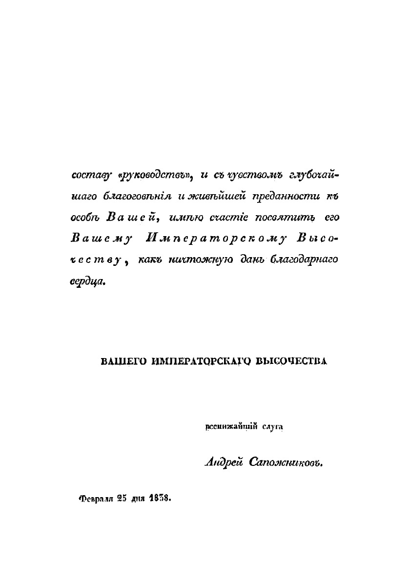 Эта книга — репринт оригинального издания (издательство "Санкт-Петербург: Типография И. Воробьева", 1838 год), созданный на основе электронной копии высокого разрешения, которую очистили и обработали вручную, сохранив структуру и орфографию оригинального издания. Редкие, забытые и малоизвестные книги, изданные с петровских времен до наших дней, вновь доступны в виде печатных книг.