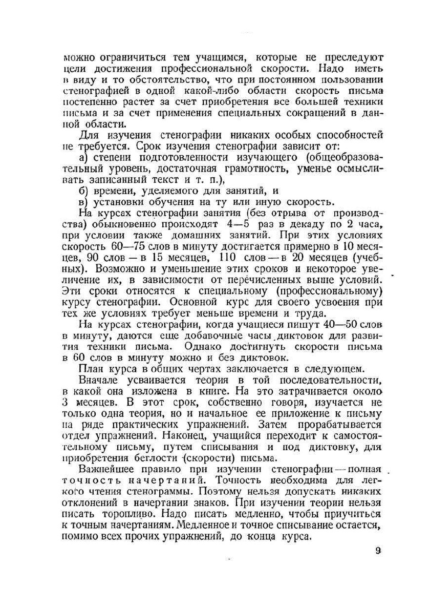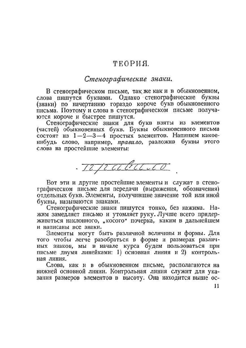 Стенографией называется рационализированное письмо, дающее возможность быстро писать при помощи особых кратких знаков. Отсюда вытекает первая область применения стенографии запись речи на съездах, конференциях, докладах, лекциях, совещаниях, запись под диктовку и проч., вторая - и важнейшая - область применения стенографии, как рационализированного письма массового распространения, существующего наряду с обыкновенным письмом. Приведенный в книге основной курс стенографии содержит теорию стенографического письма, главнейшие сокращения наиболее употребитeльных слов и ряд упражнений и примеров связного текста