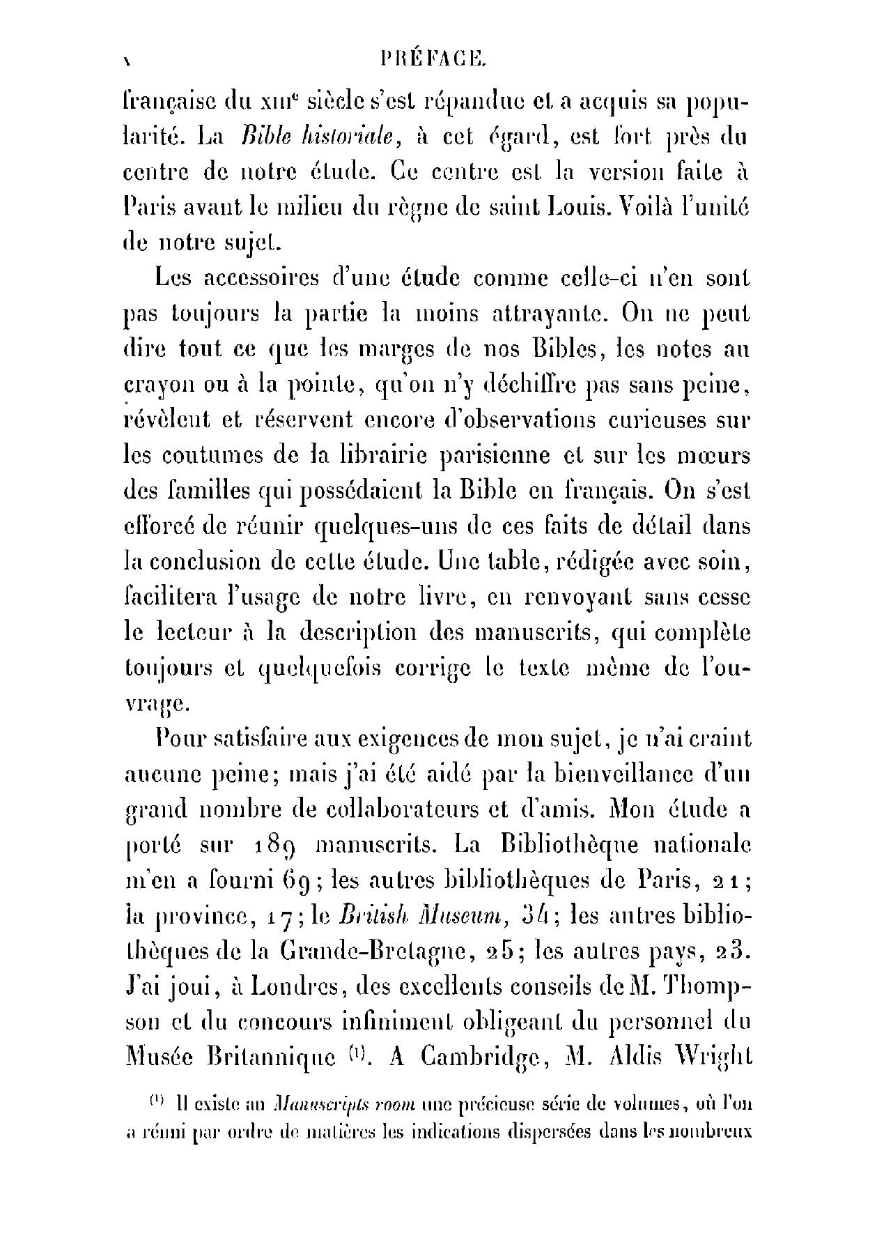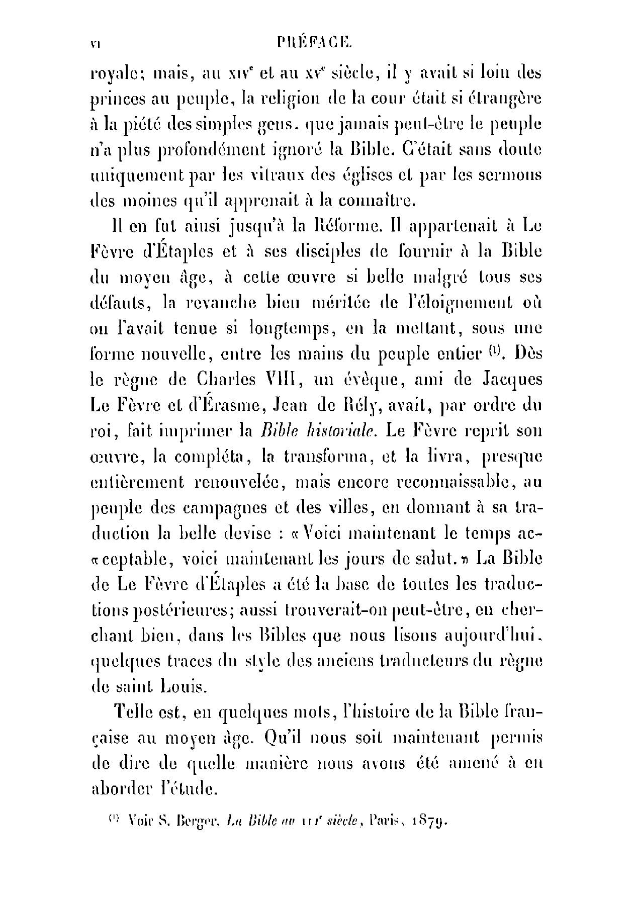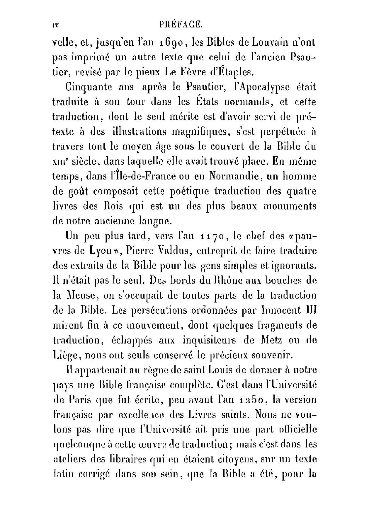 La Bible française au moyen-âge. Étude sur les plus anciennes versions de la Bible écrites en.