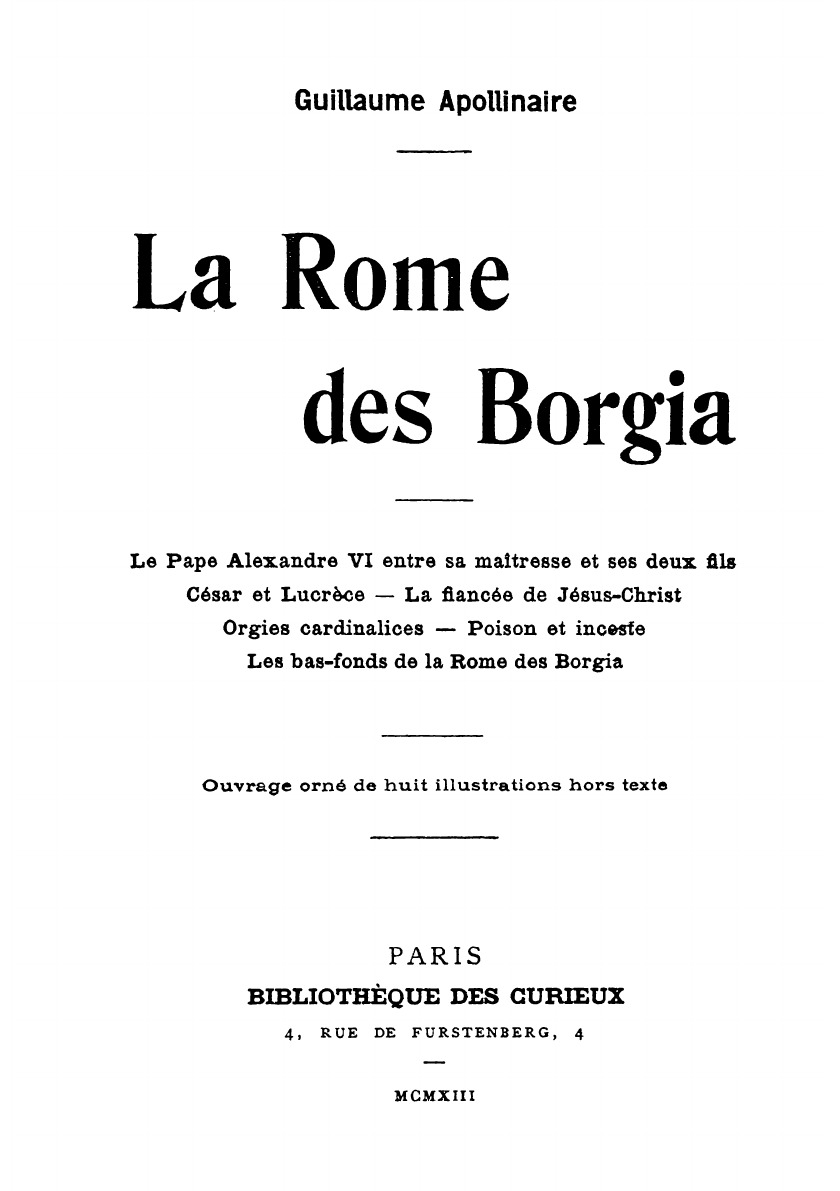 Le Pape Alexandre VI entre sa maitresse et ses deux fils Cesar et Lucrece - La fiances de Jesus-Christ Orgies cardinalices - Poison et inceste Les bas-fonds de la Rome des Borgia