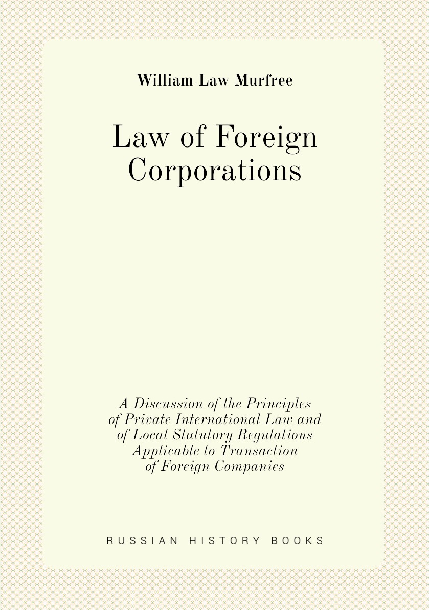 Печатная книга «Law of Foreign Corporations, A Discussion of the Principles of Private International Law and of Local Statutory Regulations Applicable to Transaction of Foreign Companies» в мягкой обложке, язык - английский. В книге 460 страниц, она напечатана на белой офсетной бумаге плотностью 80 г/м². Формат издания — 148x210 мм. Все книги аккуратно упаковываем в прочный трёхслойный непрозрачный картонный конверт.