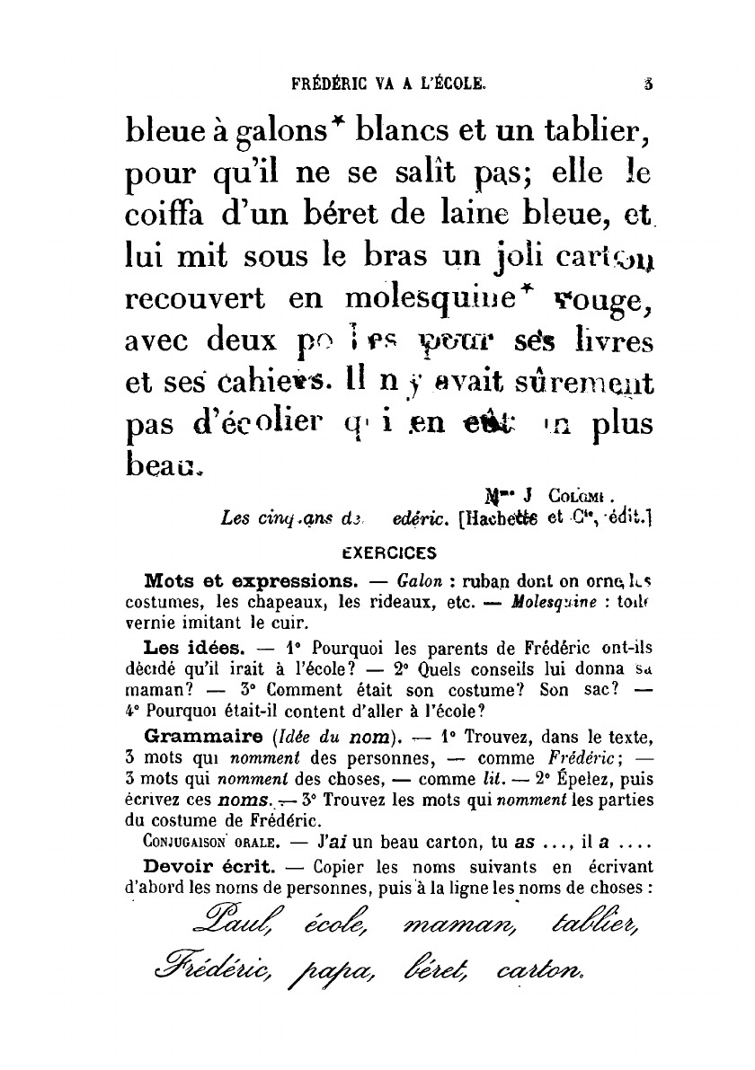 Récitation, grammaire, orthographe, vocabulaire, élocution.