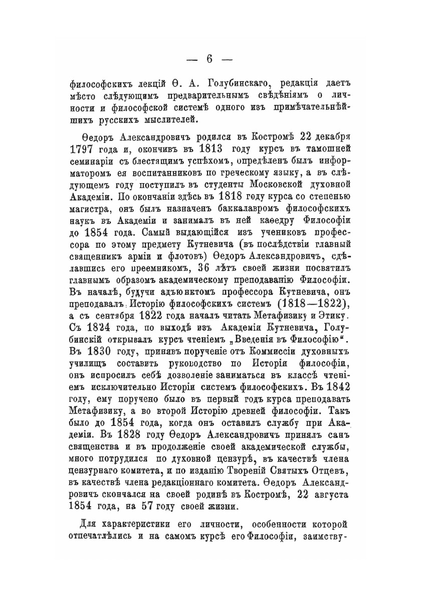 Лекции выдающегося русского философа, профессора Московской духовной Академии, пользовавшегося огромным научным и нравственным авторитетом среди современников. В личности Голубинского высокая ученость сочеталась с глубокой духовностью. Признанный основателем русской теистической философии, Ф.А. Голубинский был облечен священным саном и являл по воспоминаниям всех знавших его пример подлинно христианской жизни. Уделяя внимание исследовательской и преподавательской работе, Ф.А. Голубинский не оставил собственноручных письменных произведений. Его философские идеи воспроизводятся по записям, сделанным слушателями Московской Духовной Академии. В публикуемой книге представлены курсы Общего введения в философию и «Пропедевтика в метафизику».