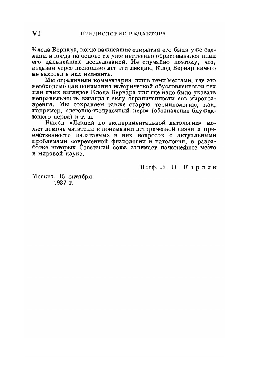 Критическое освоение наследия классиков физиологии и патологии - одна из задач теоретической медицины.К этому наследию относятся произведения крупнейшего физиолога и патолога XIX века - Клода Бернара.Лекции по экспериментальной патологии" избраны для издания потому, что они наиболее удачно и достаточно полно выражают взгляды Клода Бернара, относящиеся к различным областям физиологии и патологии, к вопросам организации эксперимента, экспериментальной критики, преподавания физиологии и т.д.