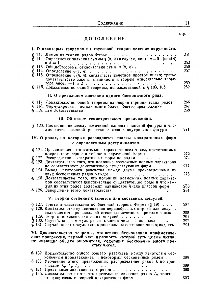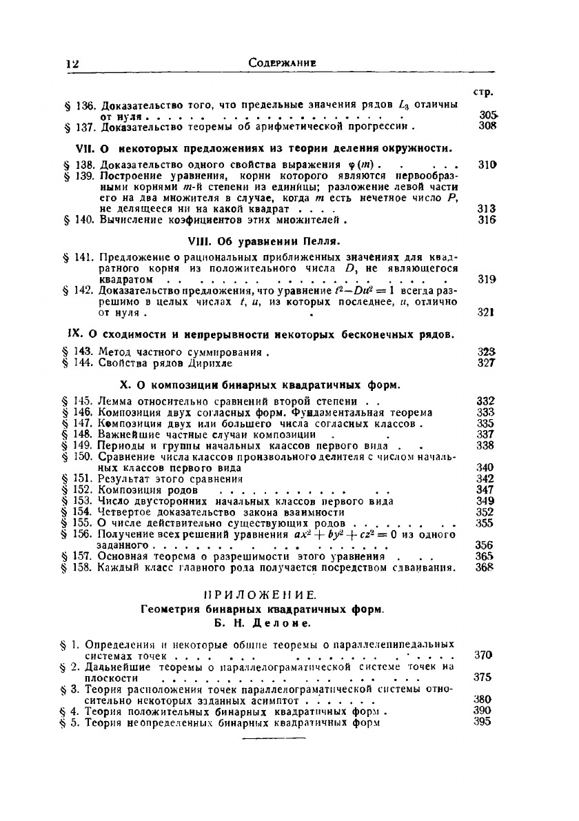Настоящая книга, написанная выдающимся немецким математиком П. Г. Лежен Дирихле, принадлежит к числу лучших классических книг по теории чисел. Составленная Р. Дедекиндом по лекциям Дирихле, прочитанным в 1856-1857 годах, она до сих пор не потеряла своего актуального значения. Все желающие получить серьезную математическую подготовку и в настоящее время не могут пройти мимо этой замечательной книги. В ней содержатся основные результаты теории квадратичных форм, которые К. Гаусс изложил в своем знаменитом сочинении «Исследования по арифметике», и дано систематическое изложение исследований самого Дирихле. Эти исследования принадлежат к наиболее глубоким результатам математики XIX века и служат основанием современной теории чисел.