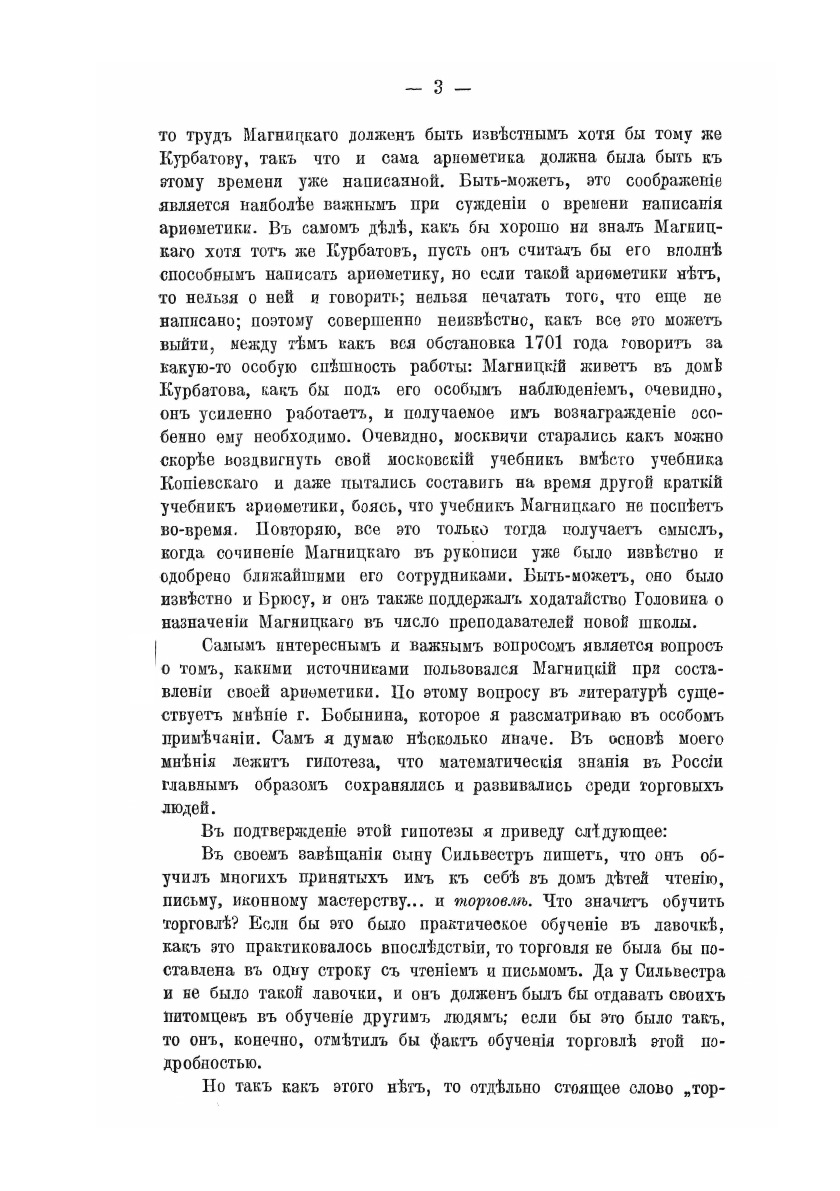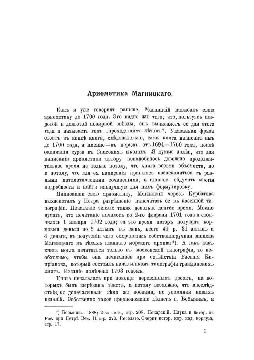Продолжение дореволюционной монографии о Магницком и его труде «Арифметика» посвящено описанию и анализу особенностей бессмертного сочинения: фактов, приемов изложения, педагогических идей как с научной и учебной, так и с исторической точки зрения.