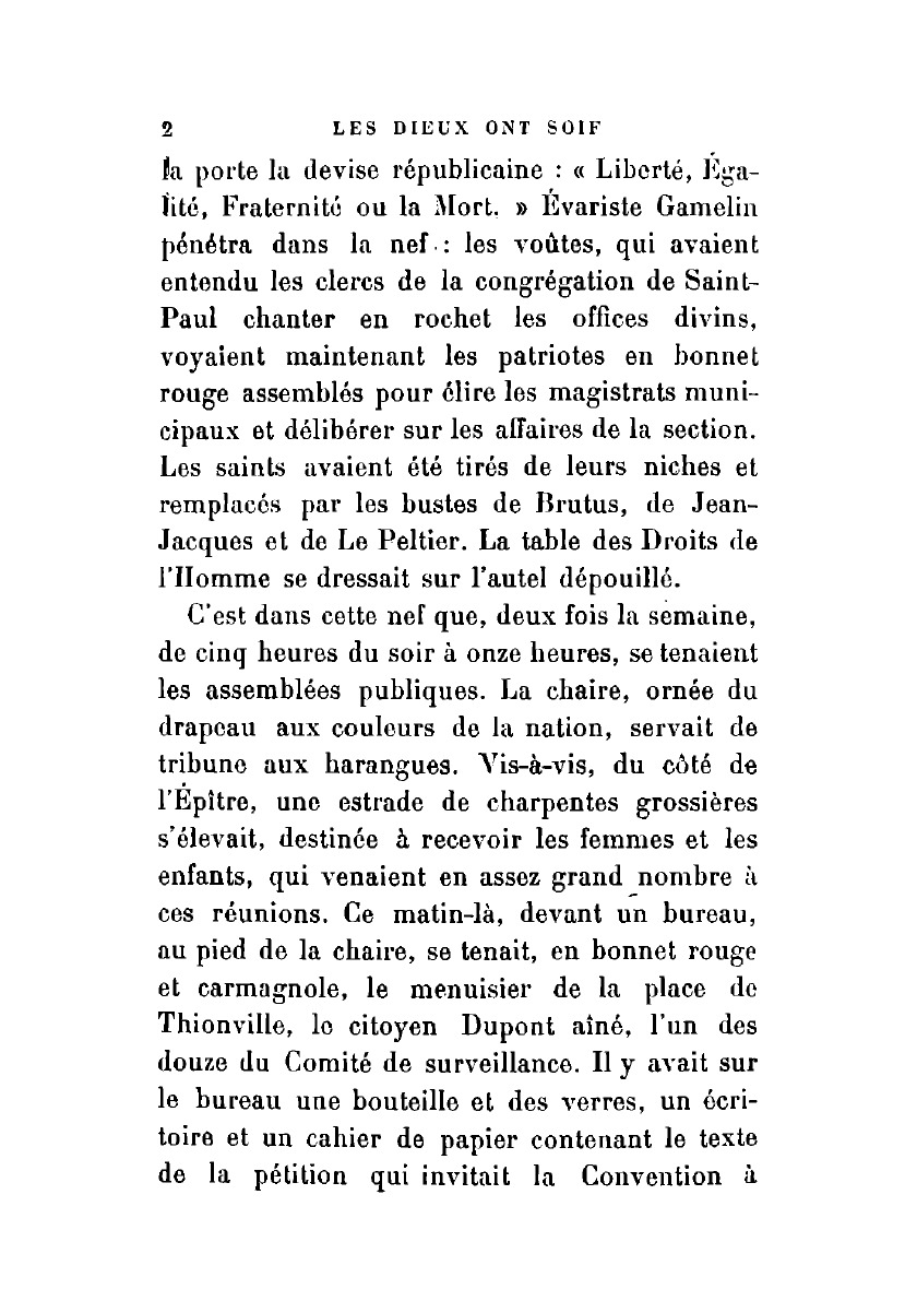 Печатная книга «Les dieux ont soif» в мягкой обложке, язык - французский. В книге 364 страниц, она напечатана на белой офсетной бумаге плотностью 80 г/м². Формат издания — 148x210 мм. Все книги аккуратно упаковываем в прочный трёхслойный непрозрачный картонный конверт.