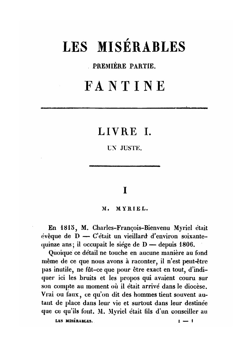 Печатная книга «Les Misérables, Partie 1» в мягкой обложке, язык - французский. В книге 436 страниц, она напечатана на белой офсетной бумаге плотностью 80 г/м². Формат издания — 148x210 мм. Все книги аккуратно упаковываем в прочный трёхслойный непрозрачный картонный конверт.