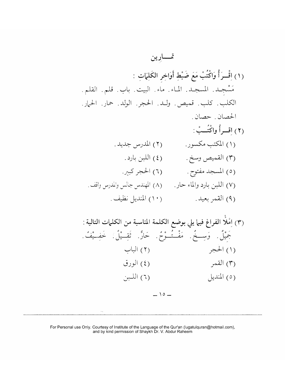 Lessons in Basic Arabic by Dr. V. Abdur-Rahim.