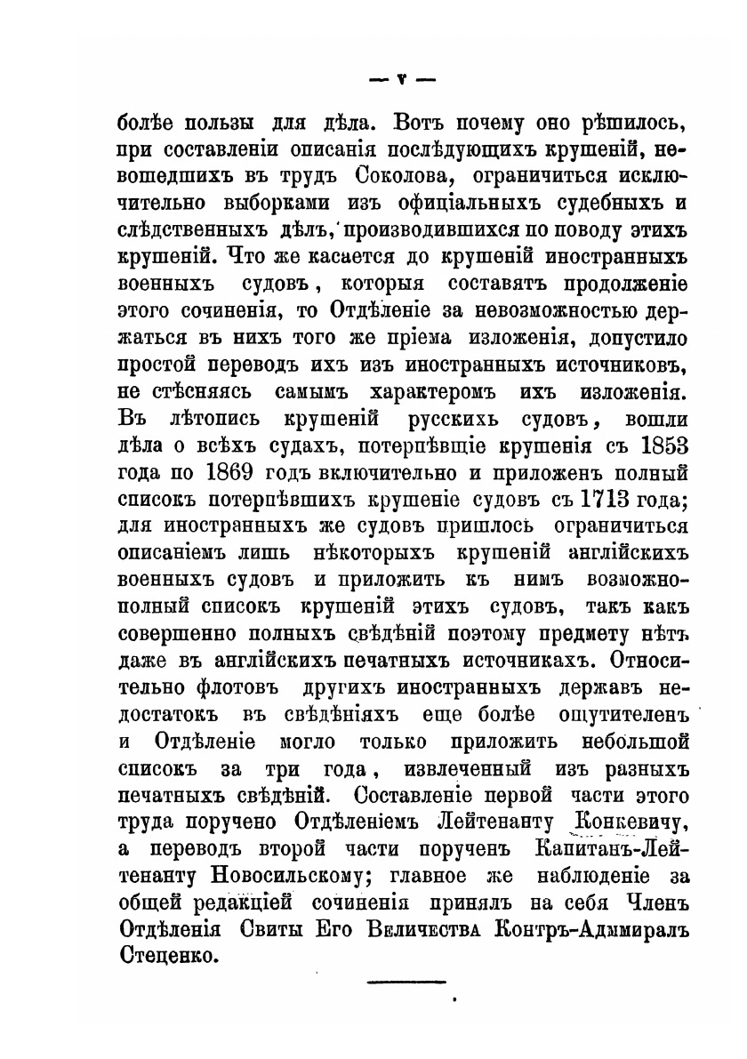 «Летопись крушений и других бедственных случаев военных судов русского флота», составленная лейтенантом Л. Г. Конкевичем, представляет собой описания крушений и других бедствий военных судов. Она продолжает работу А. П. Соколова «Летопись крушений и пожаров судов русского флота от начала его по 1854 год» и носит поучительный характер. Инициированное Ученым Морским Техническим Комитетом, издание задумывалось как необходимый материал для командиров судна и эскадры. «Летопись» Конкевича обобщает опыт всех предшествовавших плавателей, находившихся в критическом положении, и может предостеречь от допущенных ими ошибок. В книге разъясняются причины бедствий и указываются неверные решения командиров.В летопись крушений русских судов вошли дела о всех судах, потерпевшие бедствие с 1853 года по 1869 год включительно. К ним прилагается полный список потерпевших крушение судов с 1713 года. Также в книге помещены описания крушений некоторых иностранных судов.