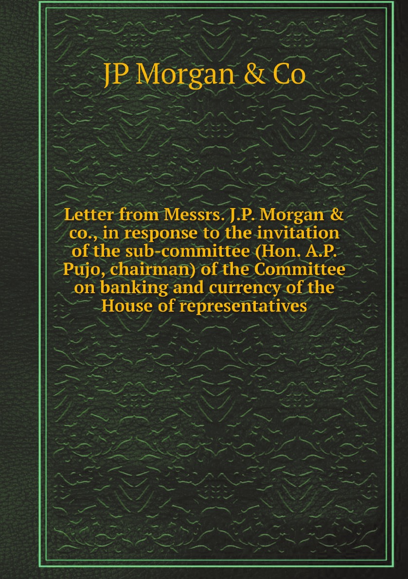 Печатная книга «Letter from Messrs. J.P. Morgan & co., in response to the invitation of the sub-committee (Hon. A.P. Pujo, chairman) of the Committee on banking and currency of the House of representatives» в мягкой обложке, язык - английский. В книге 36 страниц, она напечатана на белой офсетной бумаге плотностью 80 г/м². Формат издания — 148x210 мм. Все книги аккуратно упаковываем в прочный трёхслойный непрозрачный картонный конверт.