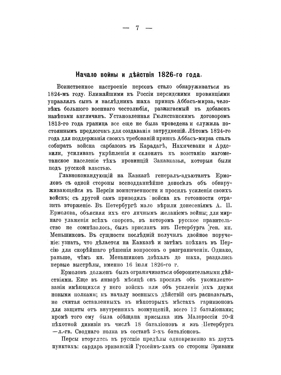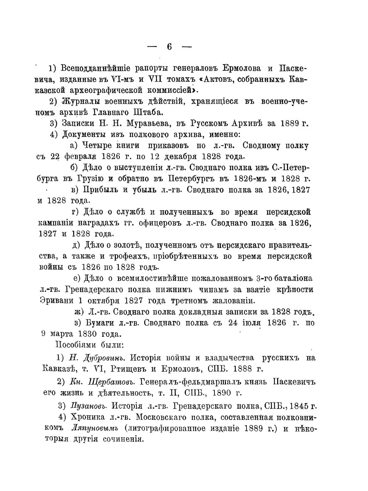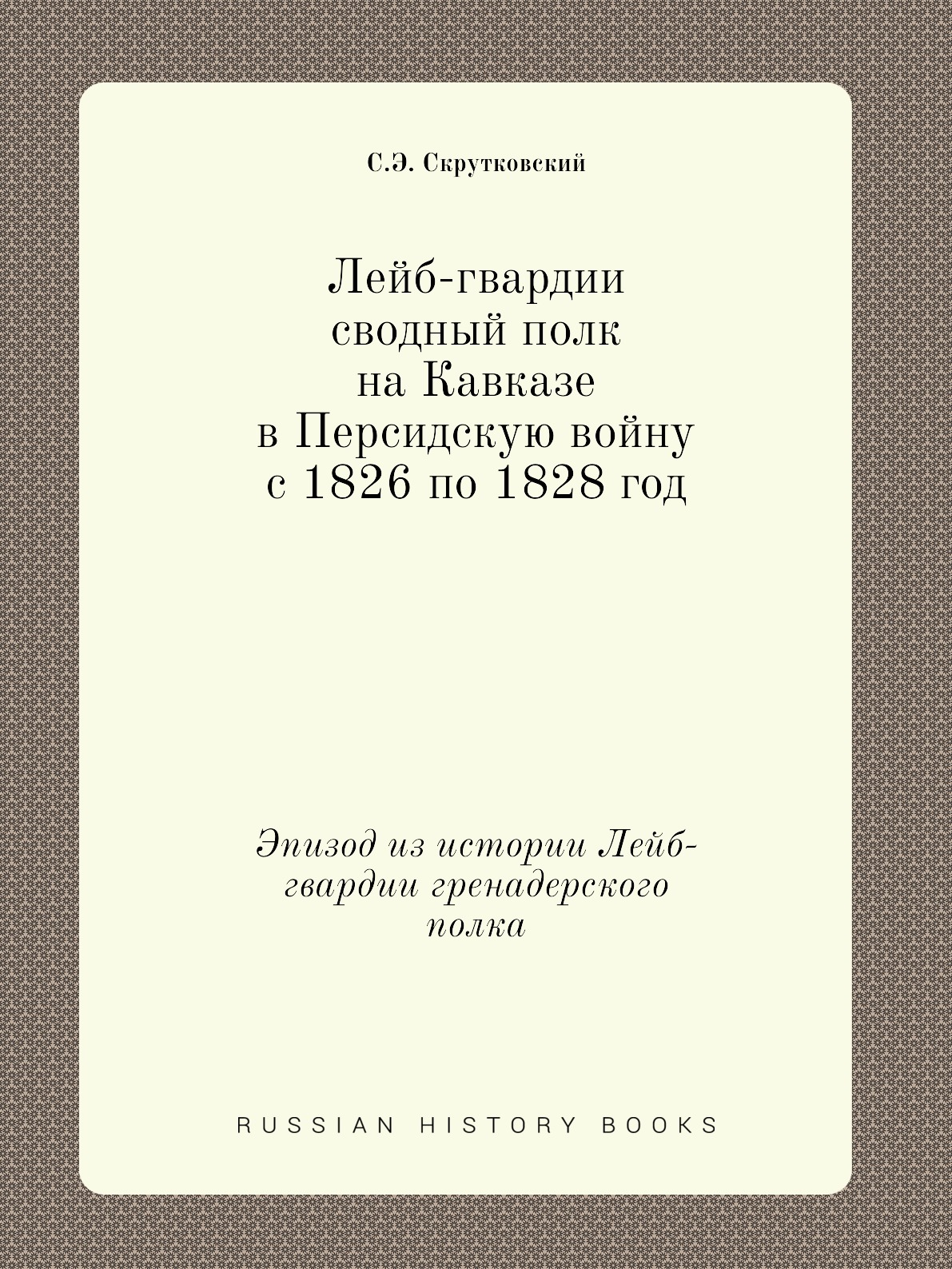 Лейб-гвардии сводный полк на Кавказе в Персидскую войну с 1826 по 1828 год. Эпизод из истории Лейб-гвардии гренадерского полка.Представленный военно-исторический очерк был подготовлен поручиком полка С. Э. Скрутковским в рамках разработки капитального юбилейного труда, посвященного 150-летию со времени создания полка, первый том которого впоследствии (в 1906 г.) выпущенного офицером полка В.К. Судравским.30 марта 1756 года императрица Елизавета подписала представление о сформировании в пехоте четырех новых гренадерских полков, 1-й гренадерский полк, создание которого было поручено графу П. А Румянцеву, составили третьи гренадерские роты из нескольких пехотных полков, полковой праздник был назначен 18 декабря в день рождения основательницы полка Елизаветы Петровны. В апреле 1813 г. за мужество и храбрость, проявленные в Отечественную войну, полк был причислен к составу молодой гвардии и назван лейб-гвардии Гренадерским с преимуществом обер-офицеров против армейских полков в один чин (в отличие от старых гвардейских полков, где было преимущество в два чина). 20-е годы XIX столетия стали временем революционного брожения в русской армии. Не остались в стороне от декабристского движения и лейб-гвардии гренадеры. 14 декабря 1825 г. часть 2-го батальона выступила во главе с двумя офицерами и примкнула к восставшим на Сенатской площади. После разгрома восстания декабристов, уцелевшие его участники были арестованы, а затем направлены на Кавказ. С этой целью в 1826 г. был специально сформирован сводный гвардейский полк под командованием полковника-преображенца И.П. Шипова 2-го. Воины этого полка должны были «смыть с себя кровью врагов родины» пятно позора, которое легло на некоторые гвардейские части, прежде всего, нижние чины лейб-гвардии Гренадерского и лейб-гвардии Московского полков, за свою вовлеченность в декабристское выступление. Летом 1826 г. сводный полк полковника Шипова прибыл через Каспий к театру военных действий. Здесь гренадеры приняли участие в отражении значительно превышавший по численности авангард иранской армии, направлявшийся к Тифлису, а затем в составе Отдельного кавказского корпуса под командованием генерала И.Ф. Паскевича осенью 1826 г. отбросили войска иранского шаха за р. Аракс. В ходе весенне-летней кампании 1827 г. батальоны сводного гвардейского полка разгромили иранские войска Аббас-Мирзы в Армянской области и, пройдя с боями от Нахичевани, в октябре 1827 г. вступили в Эривань, ставший столицей Армении, вошедшей по условиям Туркманчайского мира 1828 г. в состав Российской империи, а затем продвигались к Тавризу (Тебризу). Личный состав двух гренадерских батальонов и особенно их офицерский состав особо отличился при осаде иранской крепости Аббас-Абада. В очерке в качестве приложения опубликован список офицеров сводного полка за 1826-1828 гг. с указанием их награждений за участие в боевых действиях.