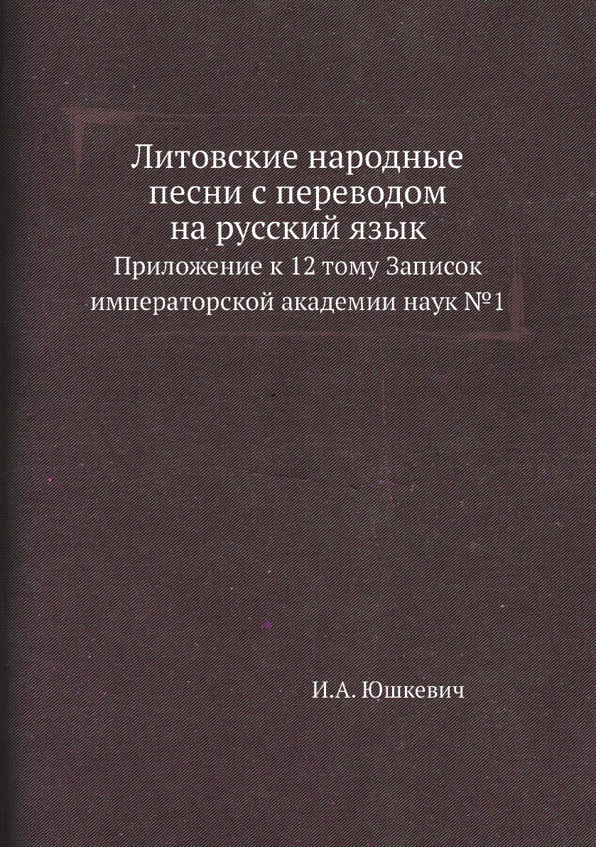 Печатная книга «Литовские народные песни с переводом на русский язык, Приложение к 12 тому Записок императорской академии наук №1» в мягкой обложке, язык - русский. В книге 47 страниц, она напечатана на белой офсетной бумаге плотностью 80 г/м². Формат издания — 148x210 мм. Все книги аккуратно упаковываем в прочный трёхслойный непрозрачный картонный конверт.