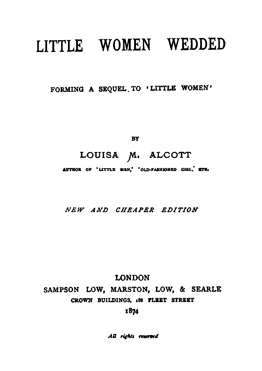 Печатная книга «LITTLE WOMEN WEDDED» в мягкой обложке, язык - английский. В книге 252 страниц, она напечатана на белой офсетной бумаге плотностью 80 г/м². Формат издания — 148x210 мм. Все книги аккуратно упаковываем в прочный трёхслойный непрозрачный картонный конверт.