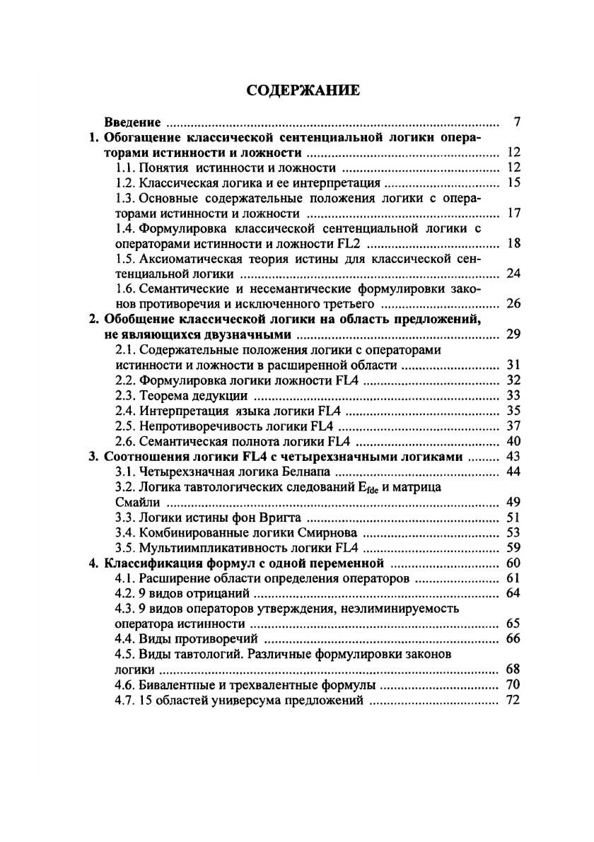 Монография посвящена одному из важнейших аспектов современных исследований теории истины – логике с операторами и предикатами истинности и ложности. Рассмотрены содержательные, семантические и философские предпосылки построенной логики. Особенность развиваемого в монографии подхода заключается во введении этих операторов как исходных непосредственно в объектный язык логики, а их свойства задаются аксиоматически. Тем самым реализован подход, альтернативный подходу Тарского. Построенная логика позволяет корректно оперировать не только с двухзначными высказываниями, но и с высказываниями, содержащими противоречивую и неполную информацию. Проведены сопоставления и установлены взаимосоотношения полученной логики и ее подлогик с такими логиками как логики Белнапа и фон Вригта, трехзначные логики Клини, Лукасевича, Бочвара, паранепротиворечивые логики Асенхо, Приста, Д’Оттавиано-да Косты. Монография представляет интерес для специалистов в области логики и ее приложений в философии.