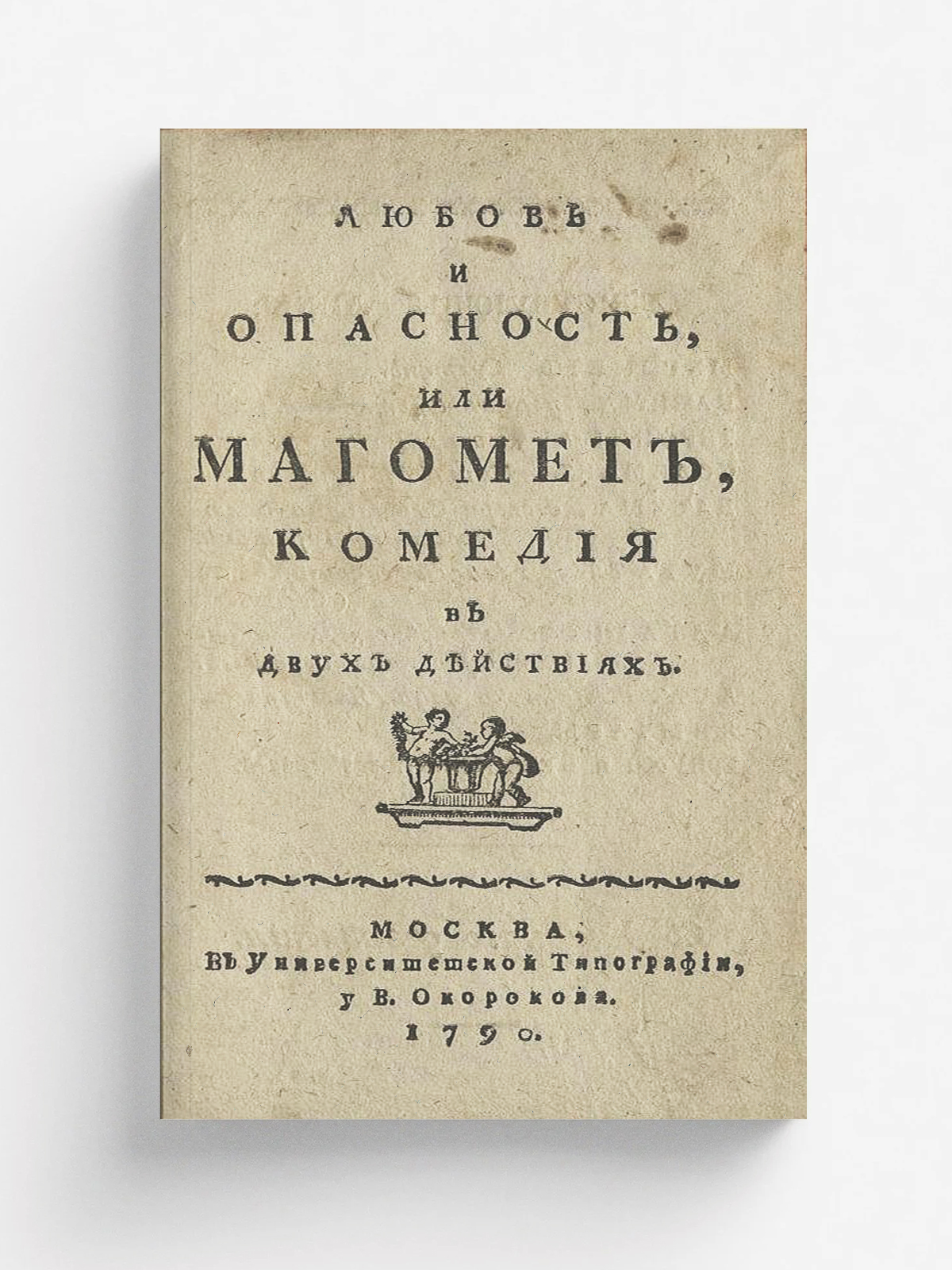 Любовь и опасность, или Магомет, : Комедия в двух действиях. — Москва : Унив. тип., у В. Окорокова, 1790. — 52 с.; 8°.