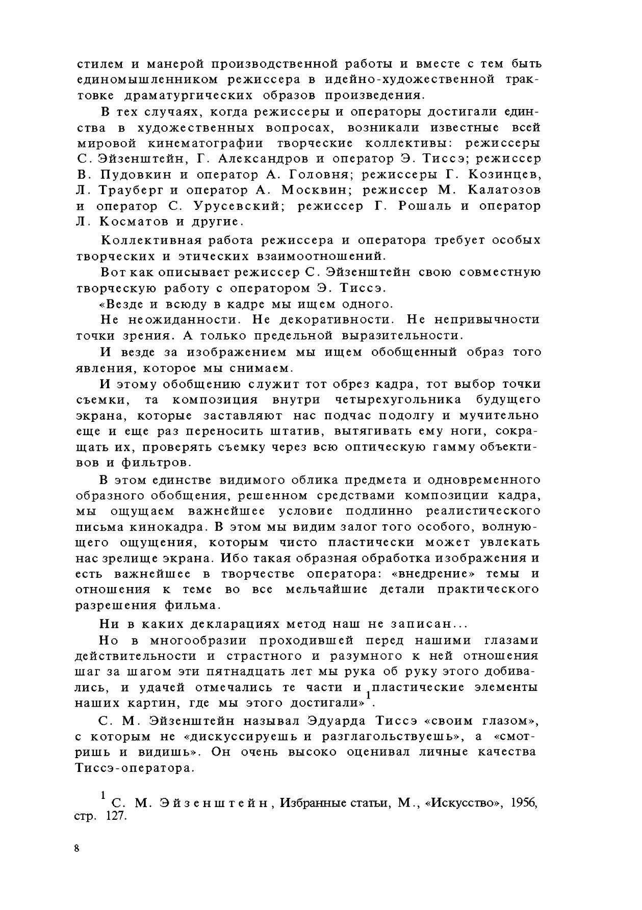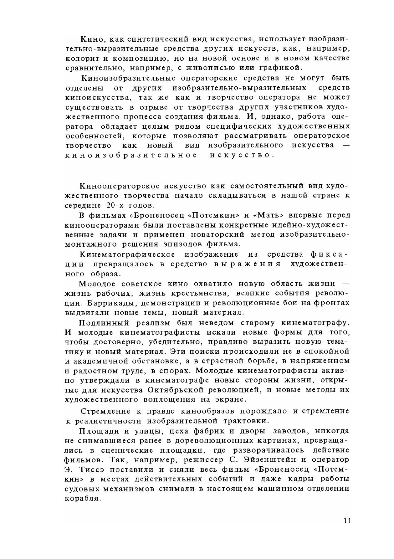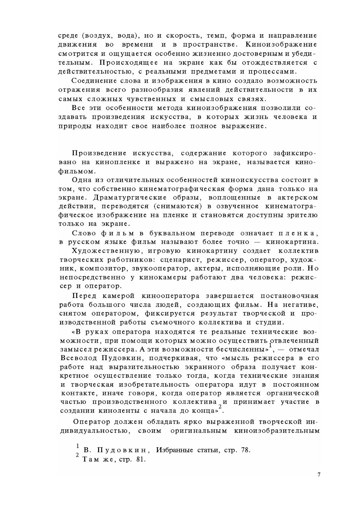 работа оператора над съемкой художественных (игровых) фильмов». Материал книги составлялся в расчете на то, что все вопросы кинематографической техники, аппаратуры, съемочных материалов и кинофотографических процессов уже знакомы читателю.