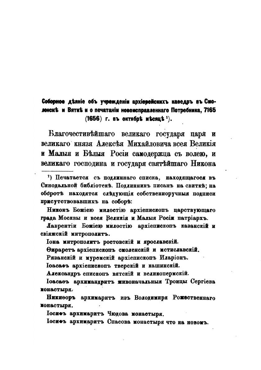 Документы, содержащие известия о лицах и событиях, из истории раскола за первое время его существования.О лицах, судившихся на соборе 1666-1667 года.