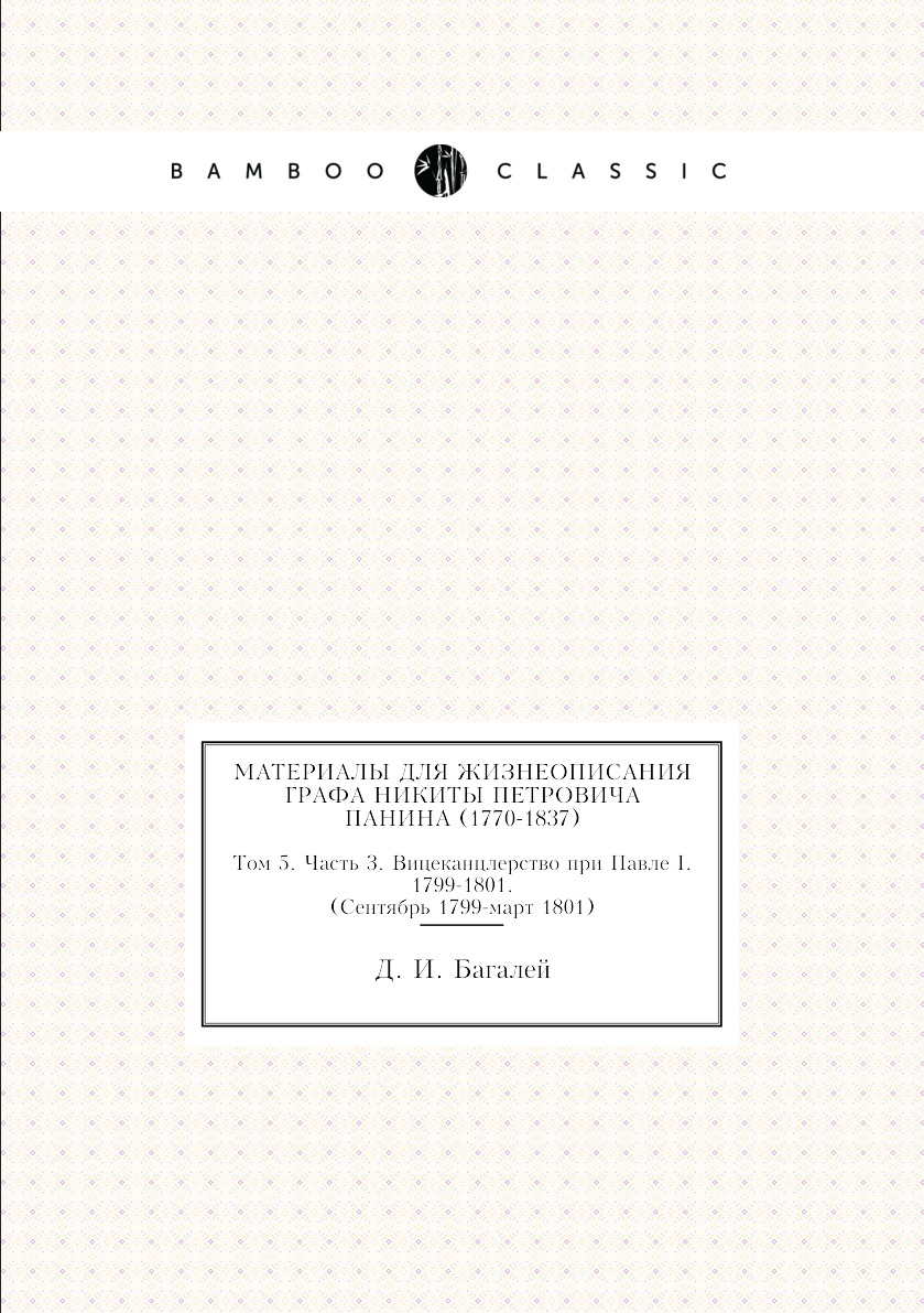 Печатная книга «Материалы для жизнеописания графа Никиты Петровича Панина (1770-1837), Том 5. Часть 3. Вицеканцлерство при Павле I. 1799-1801. (Сентябрь 1799-март 1801)» в мягкой обложке, язык - русский. В книге 698 страниц, она напечатана на белой офсетной бумаге плотностью 80 г/м². Формат издания — 148x210 мм. Все книги аккуратно упаковываем в прочный трёхслойный непрозрачный картонный конверт.