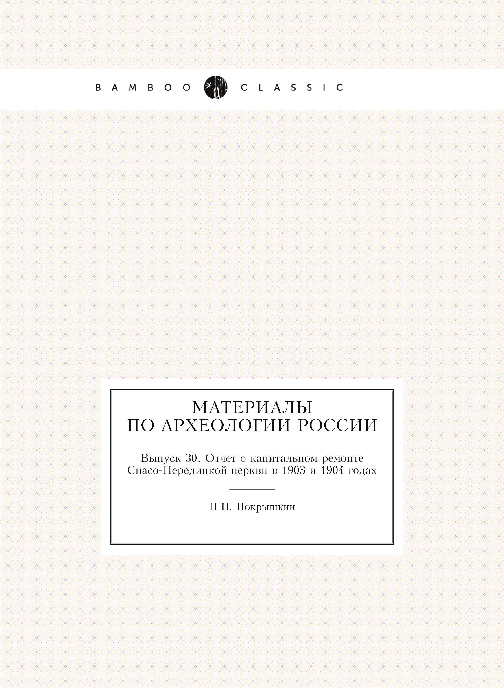 Печатная книга «Материалы по археологии России, Выпуск 30. Отчет о капитальном ремонте Спасо-Нередицкой церкви в 1903 и 1904 годах» в мягкой обложке, язык - русский. В книге 67 страниц, она напечатана на белой офсетной бумаге плотностью 80 г/м². Формат издания — 205x280 мм. Все книги аккуратно упаковываем в прочный трёхслойный непрозрачный картонный конверт.