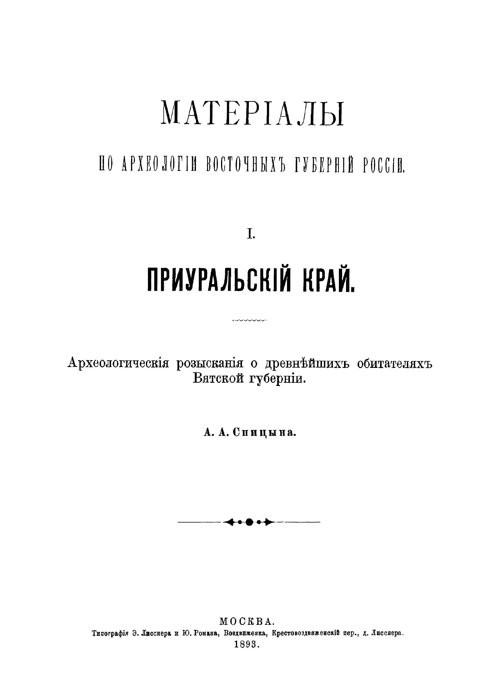 Археологические разыскания о древнейших обитателях Вятской губернии.