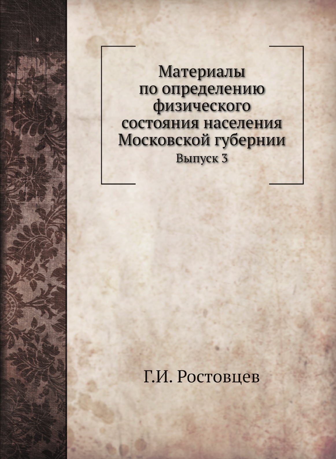 Печатная книга «Материалы по определению физического состояния населения Московской губернии, Выпуск 3» в мягкой обложке, язык - русский. В книге 64 страниц, она напечатана на белой офсетной бумаге плотностью 80 г/м². Формат издания — 205x280 мм. Все книги аккуратно упаковываем в прочный трёхслойный непрозрачный картонный конверт.