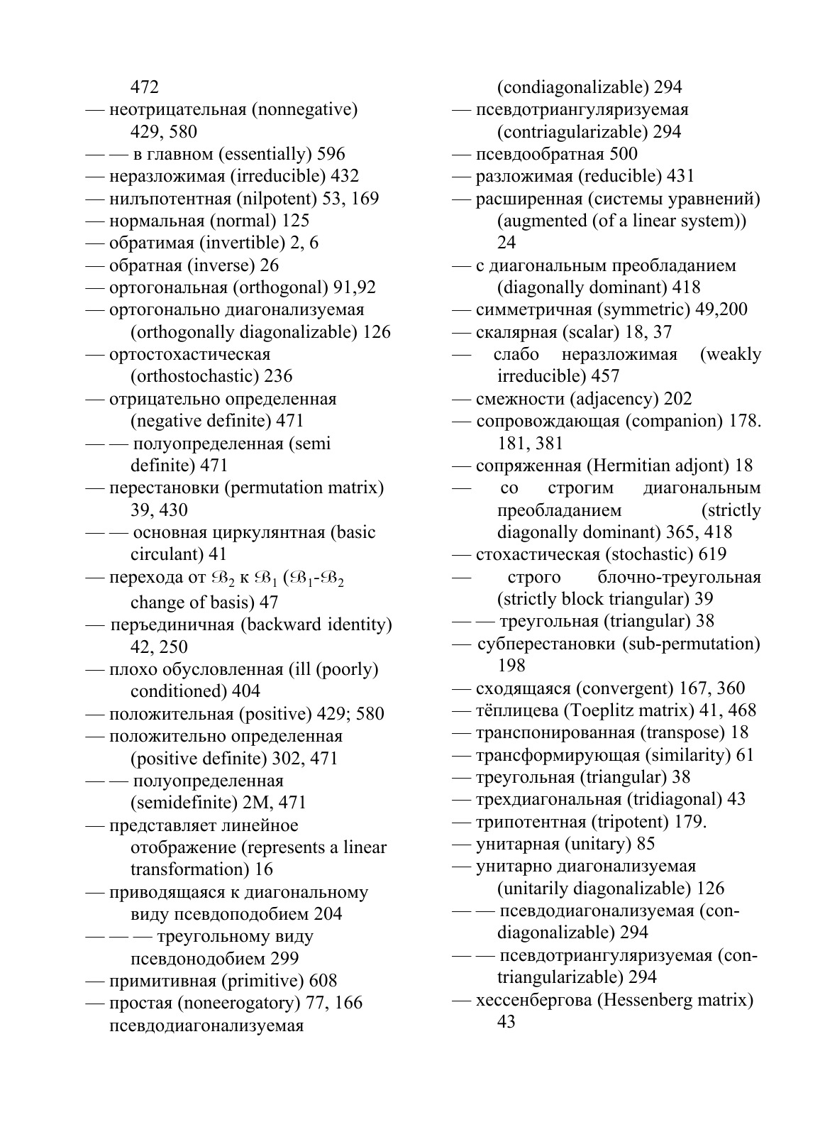 Книга представляет собой исчерпывающее изложение теории матриц, которая находит применение практически в любой области математики и во всех ее приложениях. Она содержит как классический материал, так и последние достижения в этой обширной области, в ней много упражнений и задач разной степени трудности. Книга сопоставима с известной книгой Ф. Р. Гантмахера, но гораздо шире ее в таких разделах, как оценки погрешностей при решении линейных уравнений, локализация собственных значений, теория возмущений.