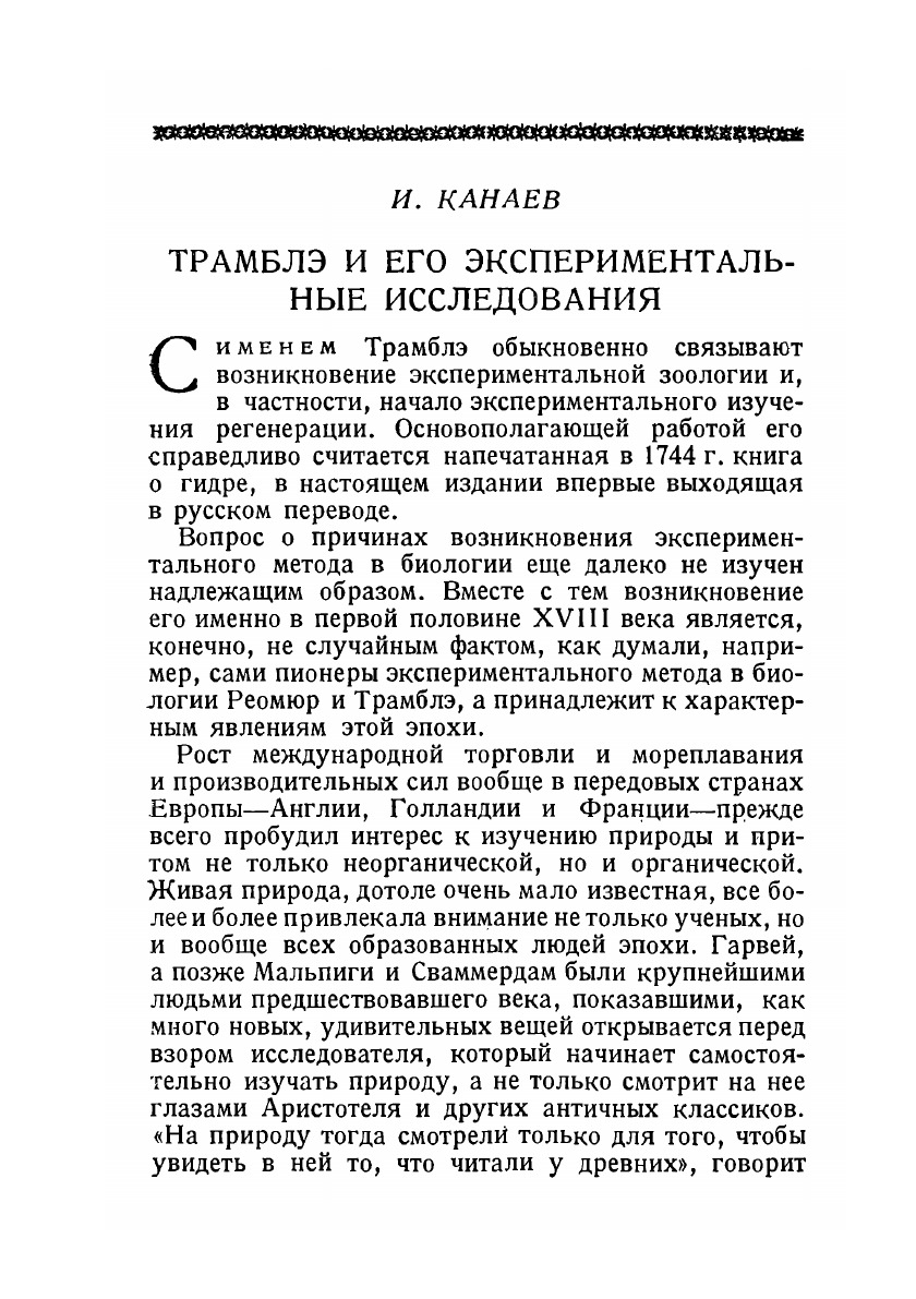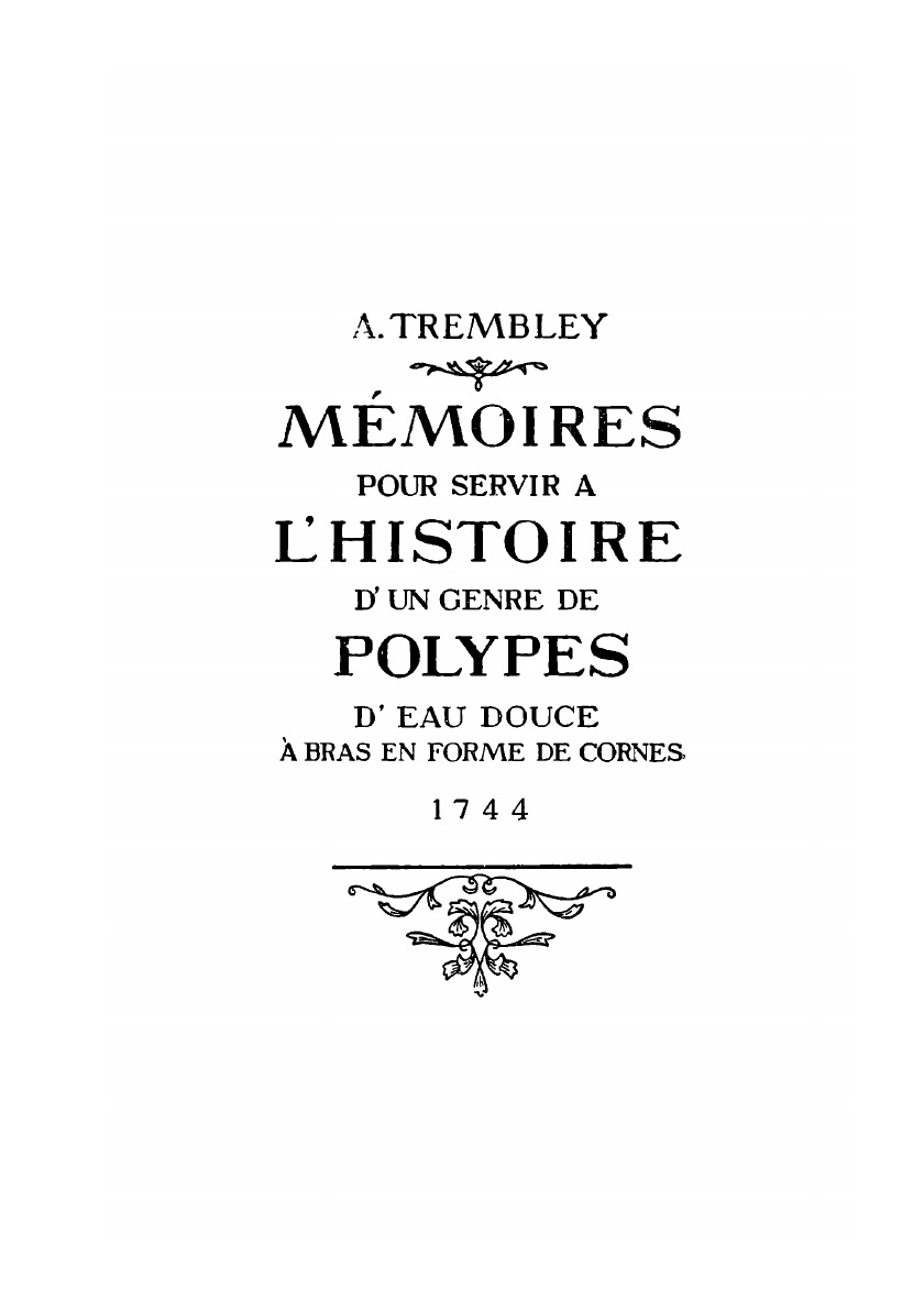 С именем Трамблэ обыкновенно связывают возникновение экспериментальной зоологии и, в частности, начало экспериментального изучения регенерации. Основополагающей работой его справедливо считается напечатанная в 1744 г. книга о гидре, в настоящем издании впервые выходящая в русском переводе.