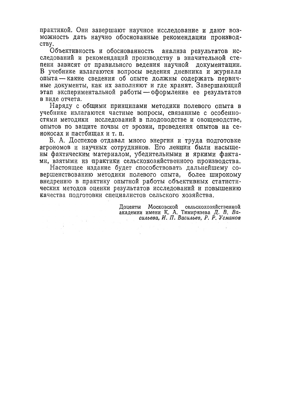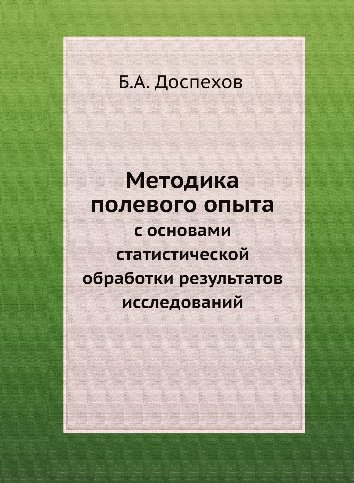 Учебник написан в соответствии с программой одноименного курса. Книга содержит теоретический курс методики полевого опыта; современные методы планирования эксперимента, наблюдений и учетов, выбора и подготовки земельных участков, закладки и проведения опыта и т.д.Даны основы статистической обработки данных наблюдений, однофакторных и многофакторных полевых и вегетационных опытов. В пятом издании (4-е вышло в 1979 г.) учтены достижения науки и передового опыта за последнии годы.Учебник предназначен для студентов агрономических специальностей.