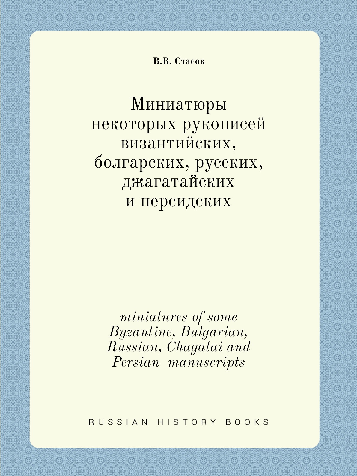 Печатная книга «Миниатюры некоторых рукописей византийских, болгарских, русских, джагатайских и персидских, miniatures of some Byzantine, Bulgarian, Russian, Chagatai and Persian manuscripts» в мягкой обложке, язык - русский. В книге 130 страниц, она напечатана на белой офсетной бумаге плотностью 80 г/м². Формат издания — 205x280 мм. Все книги аккуратно упаковываем в прочный трёхслойный непрозрачный картонный конверт.