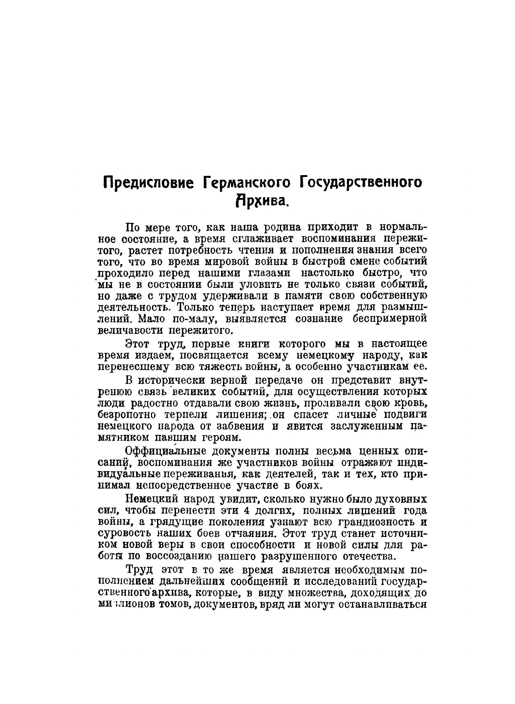 Германский государственный архив издал отдельными выпусками описание операций и боев I Мировой войны. Официальные документы полны весьма ценных описаний, воспоминания же участников войны отражают индивидуальные переживания.