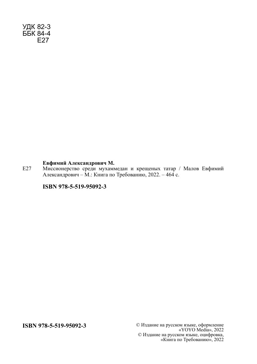 Печатная книга «Миссионерство среди мухаммедан и крещеных татар» в мягкой обложке, язык - русский. В книге 464 страниц, она напечатана на белой офсетной бумаге плотностью 80 г/м². Формат издания — 148x210 мм. Все книги аккуратно упаковываем в прочный трёхслойный непрозрачный картонный конверт.