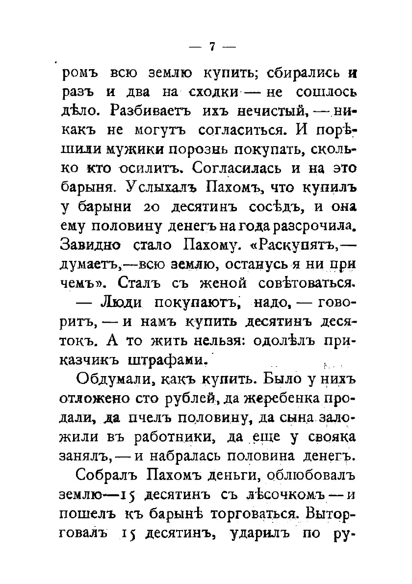 Печатная книга «Много ли человеку земли нужно?, Рассказ» в мягкой обложке, язык - русский. В книге 36 страниц, она напечатана на белой офсетной бумаге плотностью 80 г/м². Формат издания — 148x210 мм. Все книги аккуратно упаковываем в прочный трёхслойный непрозрачный картонный конверт.