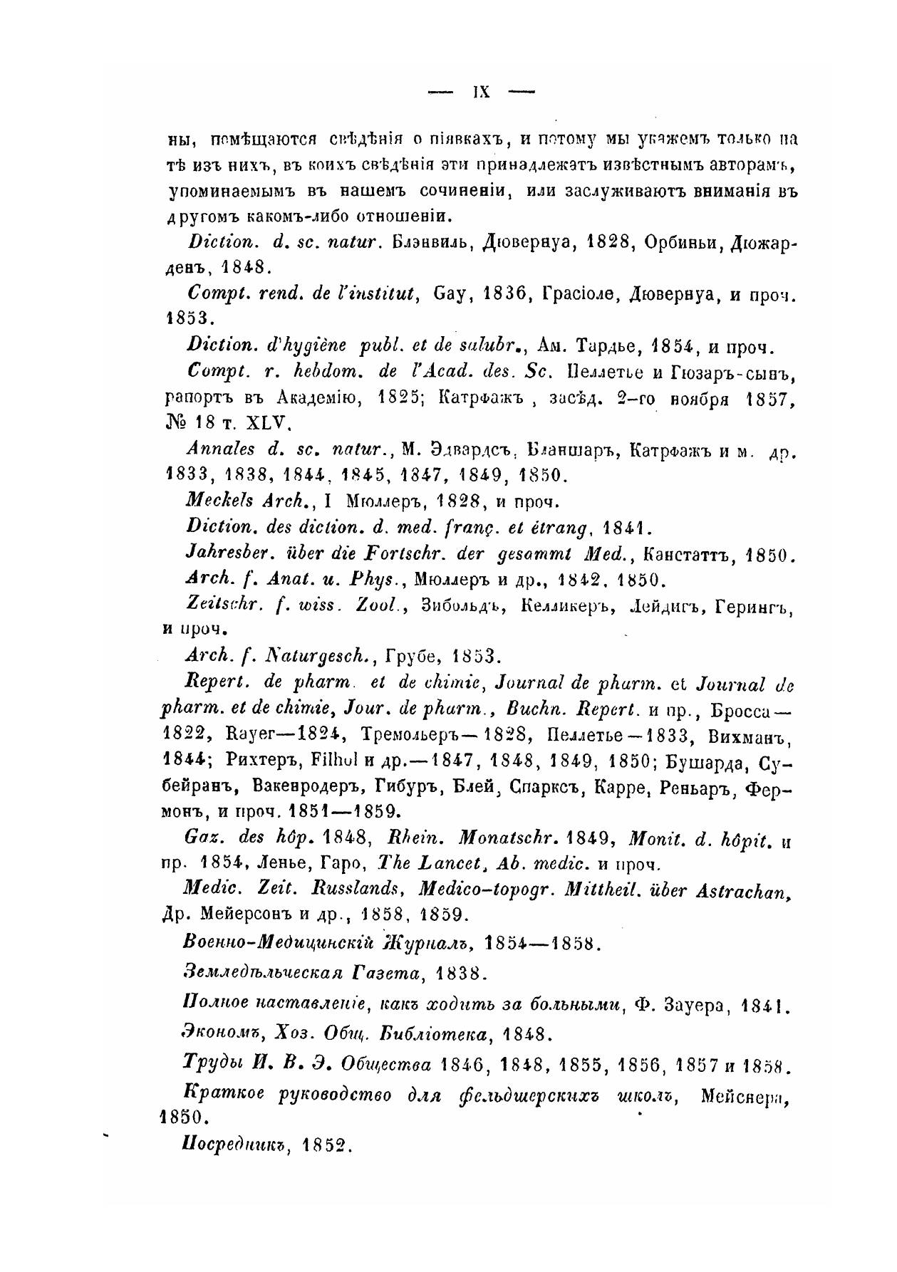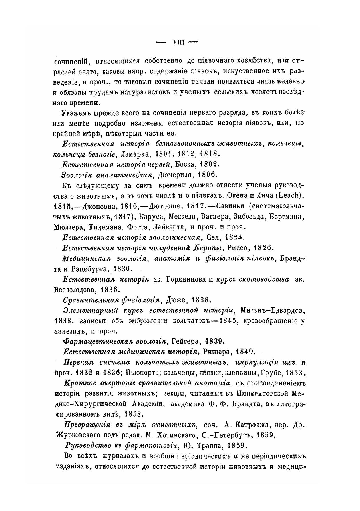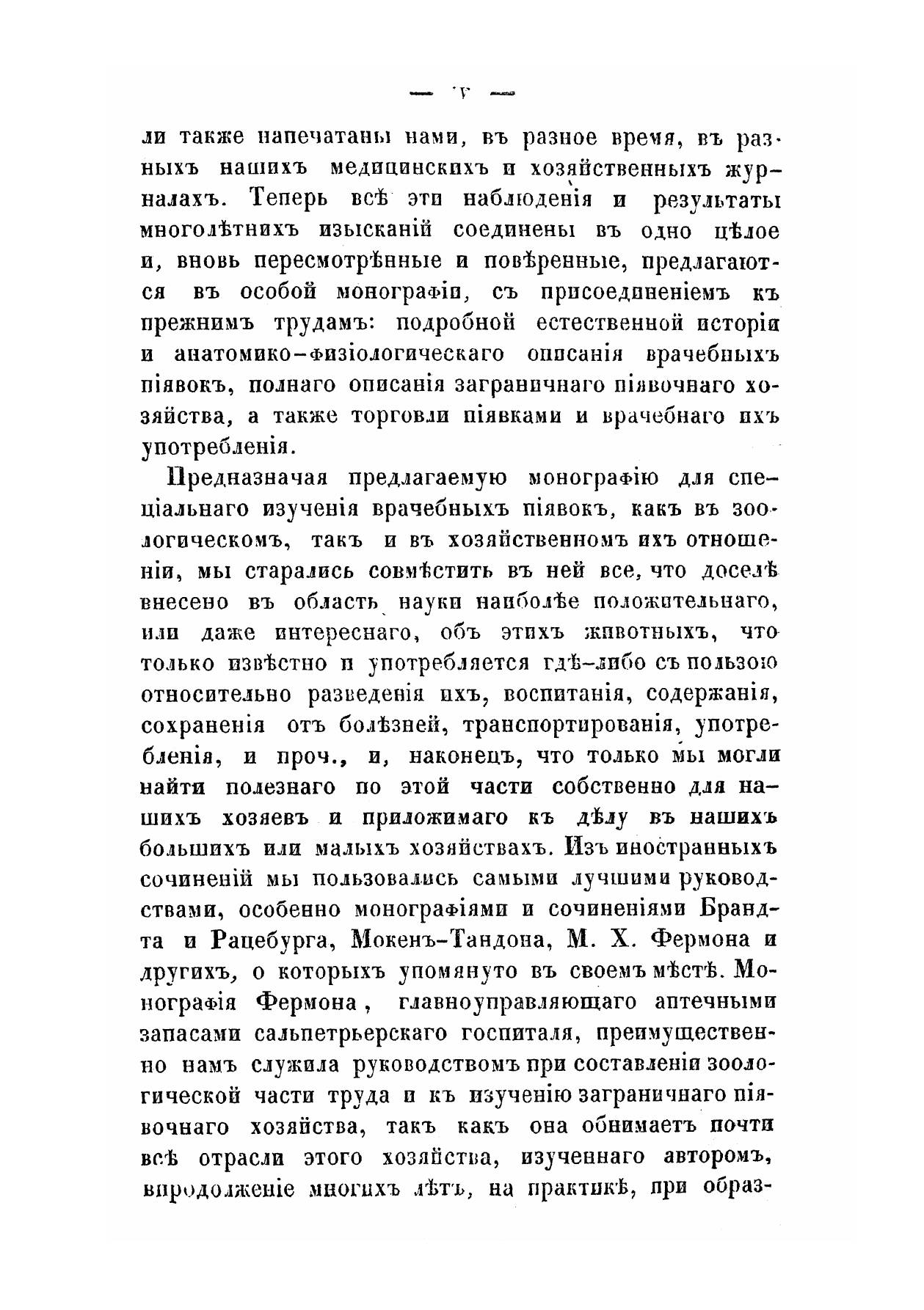 Монография врачебных пиявок, содержащая естественную историю этих животных, анатомико-физиологическое описание их и полное руководство к практическому пиявочному хозяйству, с подробным изложением месторождений и способов ловли пиявок, особенно в России, искусственного разведения их, воспитания, содержания, сохранения от болезней, лечения, торговли, перевозки, употребления как свежих, так и припускных, а также устройства пиявочных болот, прудов, сажалок, резервуаров ииразных приборов, в большом и малом виде.По поручению Военно-медицинского департамента, составил А. Воскресенский.