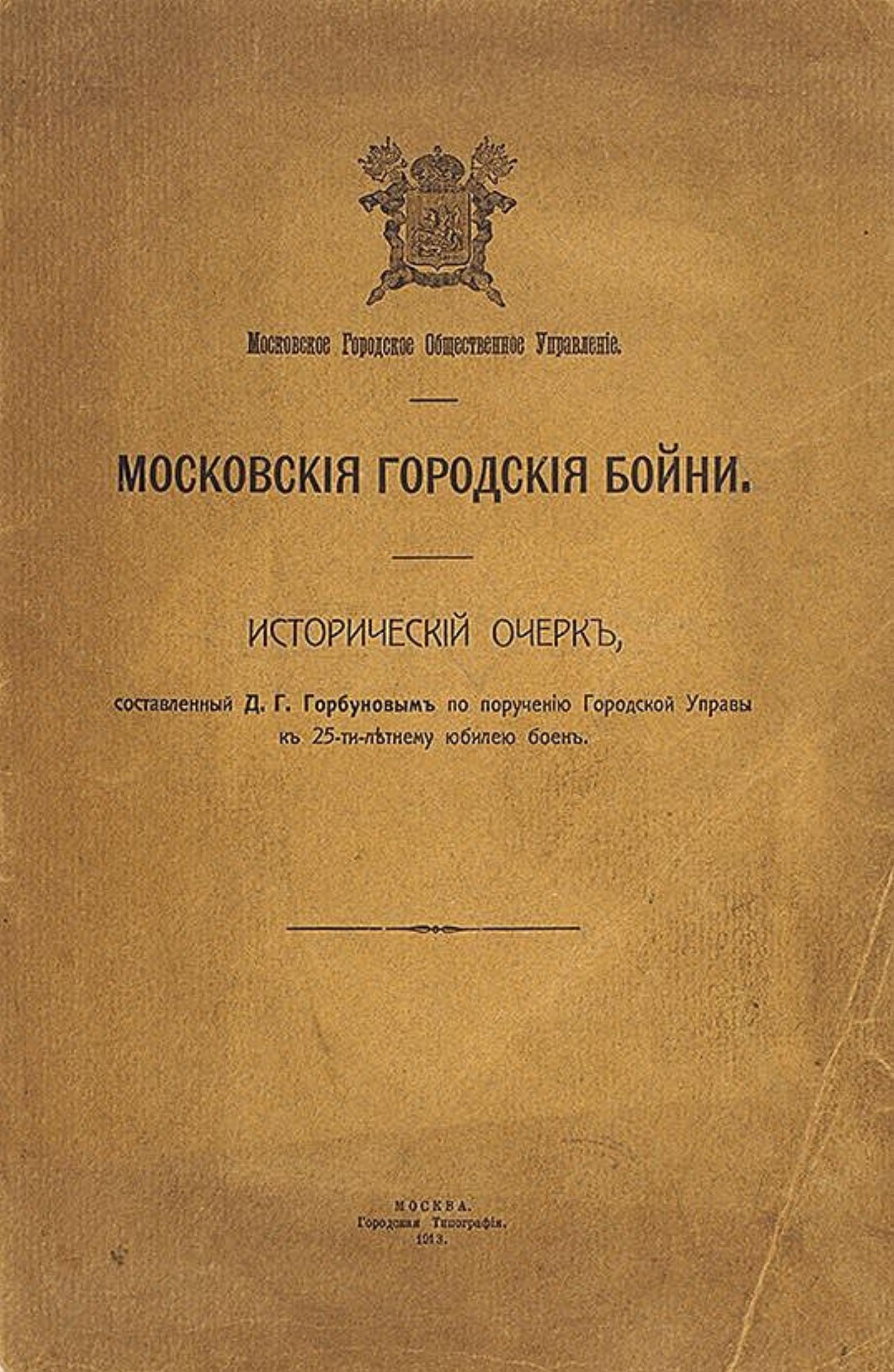 Горбунов, Дмитрий Георгиевич. Московские городские бойни : Ист. очерк, сост. Д. Г. Горбуновым по поручению Гор. управы к 25-ти-летнему юбилею Боен / Моск. гор. обществ. упр. — Москва : Гор. тип., 1913. — 101 с.; 26.