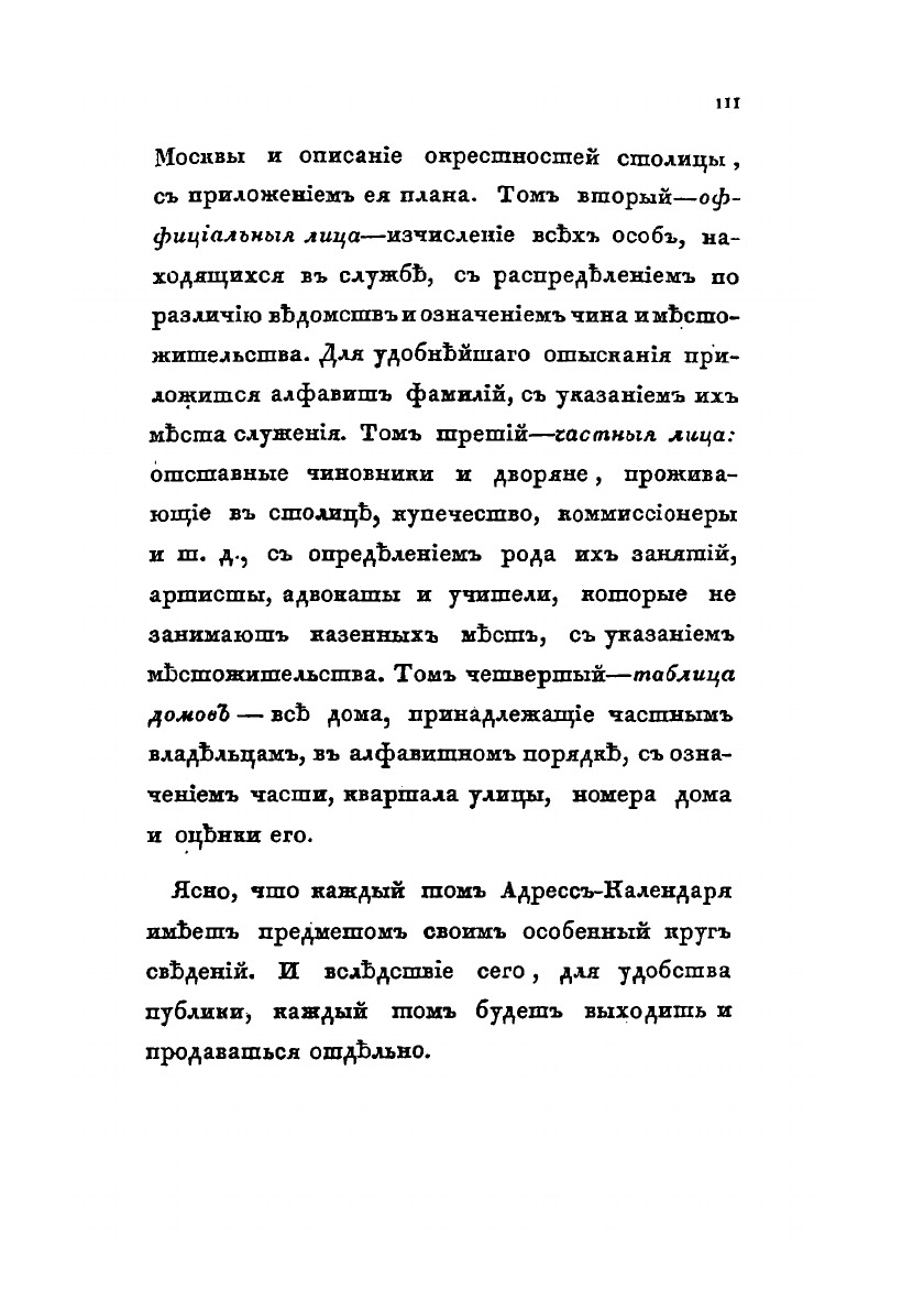 Московский адрес-календарь для жителей Москвы. Том 1. Путеводитель Москвы. Составлен по оффициальным документам и сведениям К. Нистремом. Москва, в типографии С.Селивановскаго, 1842 год