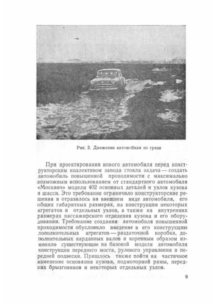 В книге представлены особенности конструкции автомобиля "Москвич-410" и особенности его эксплуатации по различным дорогам, а также в условиях движения по бездорожью.