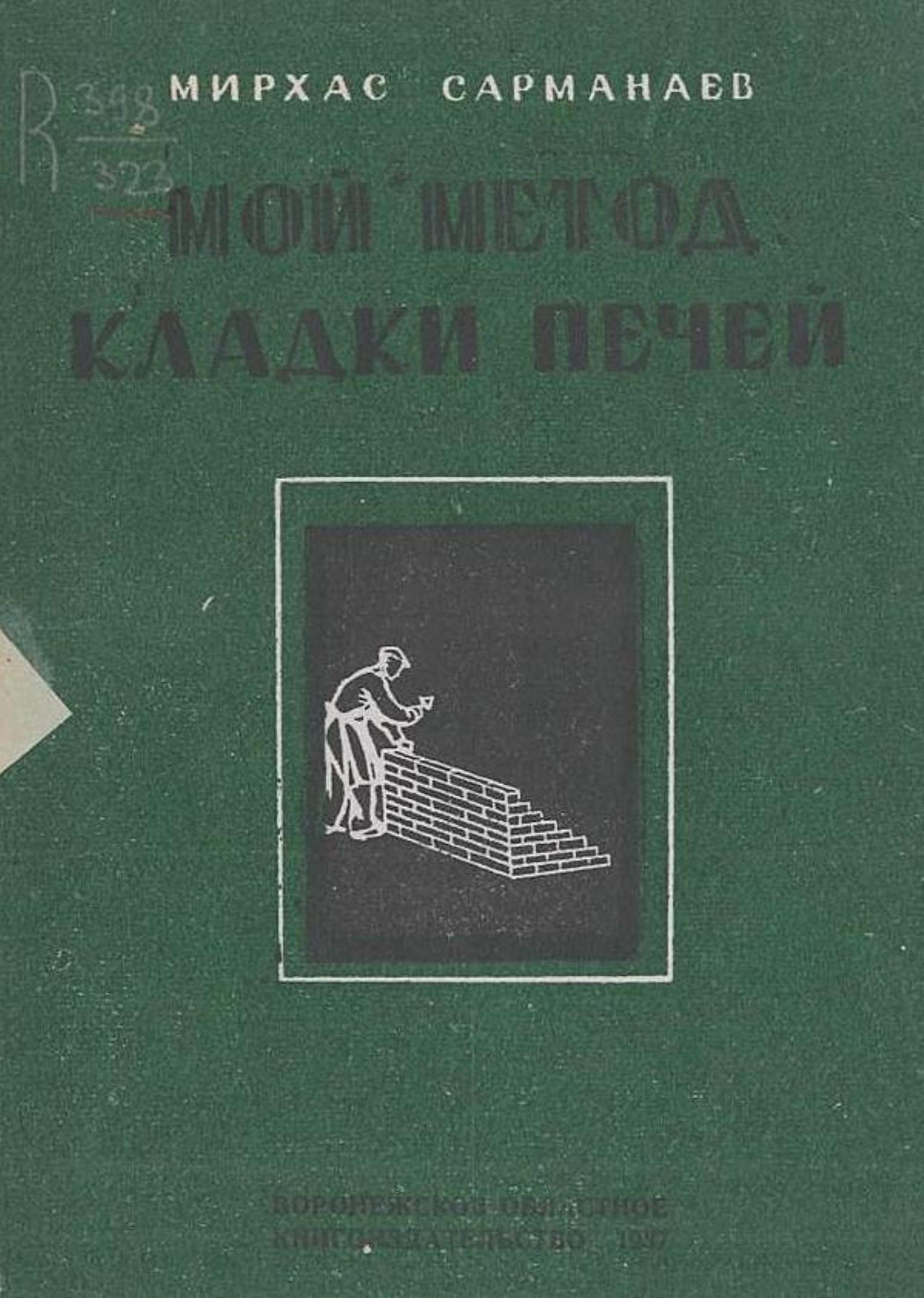 Сарманаев, Мирхас. Мой метод кладки печей : [Воронежстрой] / Мирхас Сарманаев. — [Воронеж] : Ворон. обл. кн-во, 1937 (тип. изд-ва «Коммуна»). — Обл., 27 с. : ил.; 16×12 см.