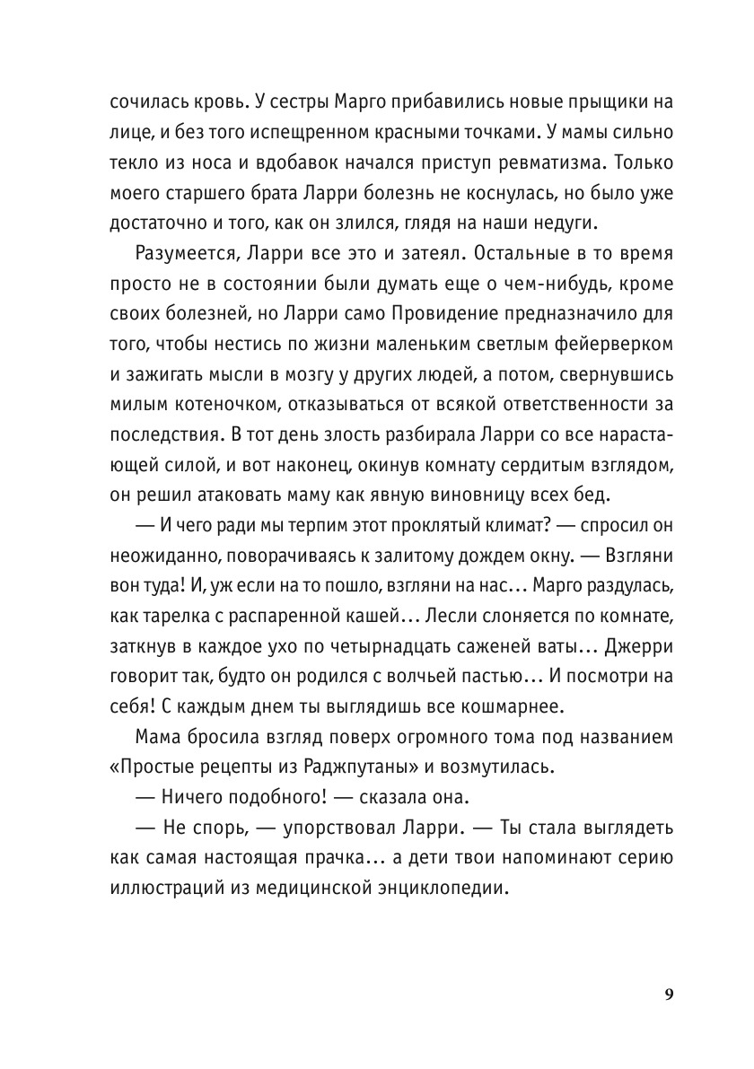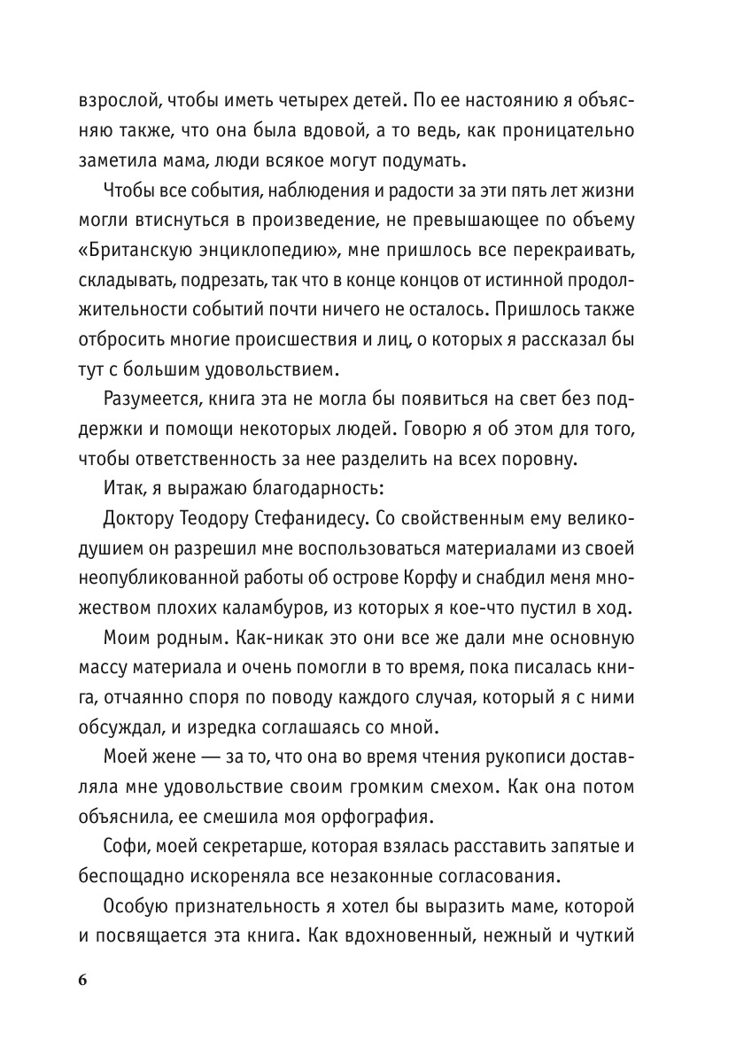 Имя Дж. Даррелла, известного ученого-зоолога, чрезвычайно популярно у нас в стране. На русский язык переводились многие его книги: «Перегруженный ковчег», «Зоопарк в моем багаже», «Путь кенгуренка» и др. Все они объединены мыслью об охране животных п растений, насыщены ценнейшим материалом и подкупают непринужденностью повествования. Книга «Моя семья и звери», сохраняя все особенности дарования Даррелла, показывает путь становления ученого-исследователя. С познавательной и воспитательной точек зрения она будет интересна не только специалистам-экологам, этологам, преподавателям разнообразных биологических дисциплин, но и самому широкому кругу читателей.