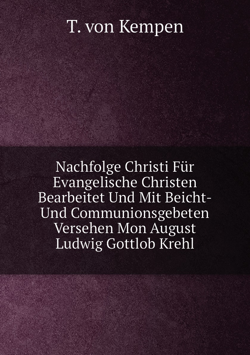 Thomas Von Kempen Nachfolge Christi Für Evangelische Christen Bearbeitet Und Mit Beicht-Und Communionsgebeten Versehen Mon August Ludwig Gottlob Krehl