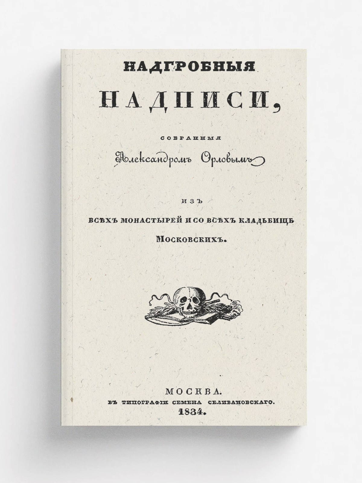 Орлов, Александр Анфимович (1790?—1840). Надгробные надписи, собранные Александром Орловым из всех монастырей и со всех кладбищ московских. — Москва: тип. С. Селивановского, 1834. — 20 с.; 24.