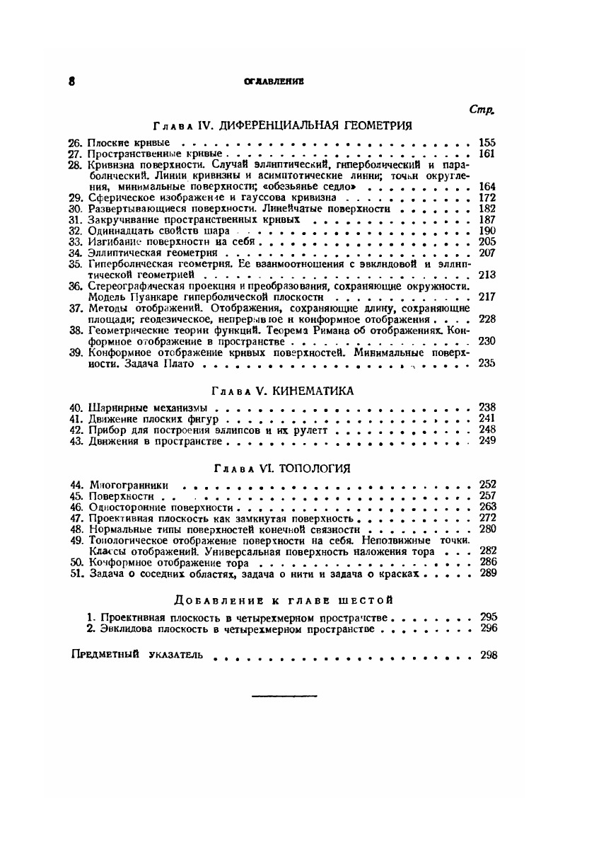 В книге содержится, действительно, очень наглядный, но достаточно строгий рассказ о геометрических науках и теориях, в частности о геометрической кристаллографии, о геометрической сущности кинематики и о топологии.Книга вполне доступна школьникам старших классов, интересующимся математикой. В то же время она во многих главах хорошо дополняет, не дублируя, курс вузовской математики. Эту книгу с удовольствием прочтет и зрелый математик, случайно не познакомившийся с нею в процессе своего математического образования.